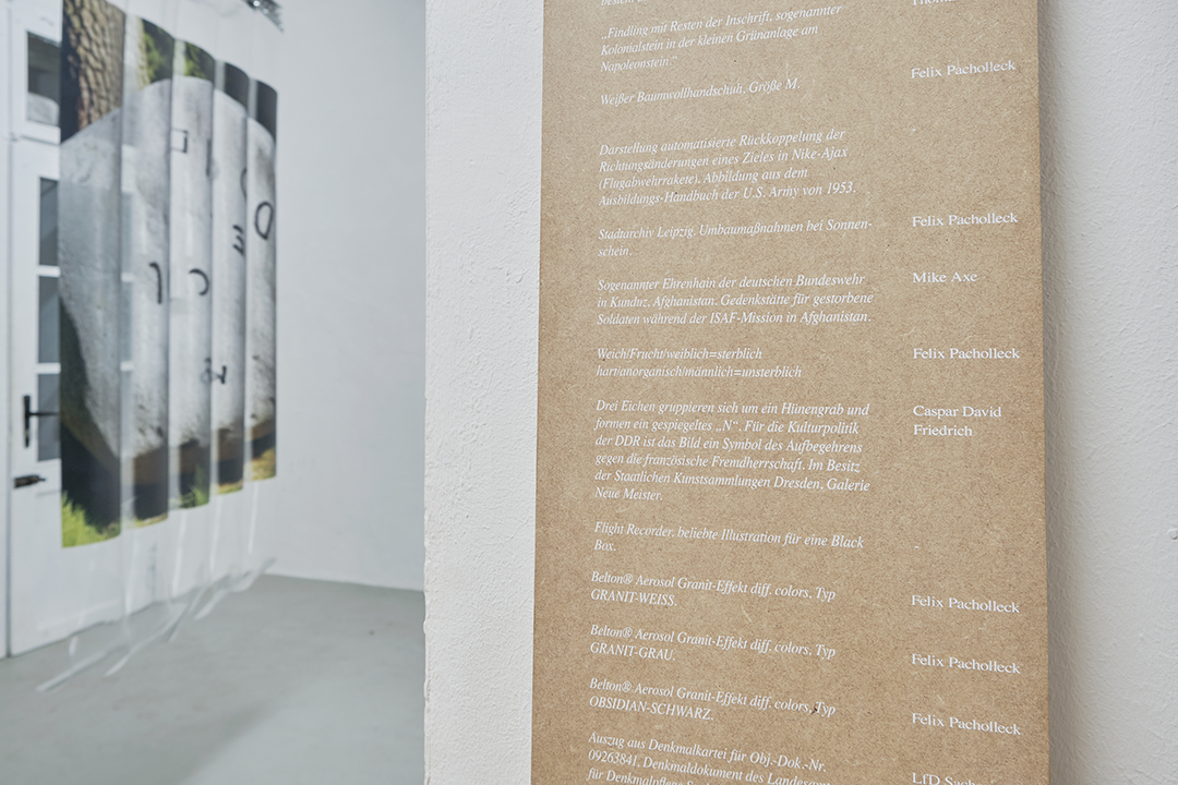 Die multimediale Arbeit reflektiert dabei auch die extraktiven Logiken fotografischer Bilder – in ihrer Herstellung, Zirkulation und Materialität. Fotografie wird nicht nur als bildgebendes Medium verstanden, sondern als Teil eines extraktiven Apparats dessen Bildträger selbst auf kolonialen Stoffen und Materialitäten beruhen – von Silber bis Daten. So entsteht eine Reflexion über Medienextraktivismus, in der die Materialitäten der Bilder mit der Erinnerungspolitik des Denkmals verschränkt werden.