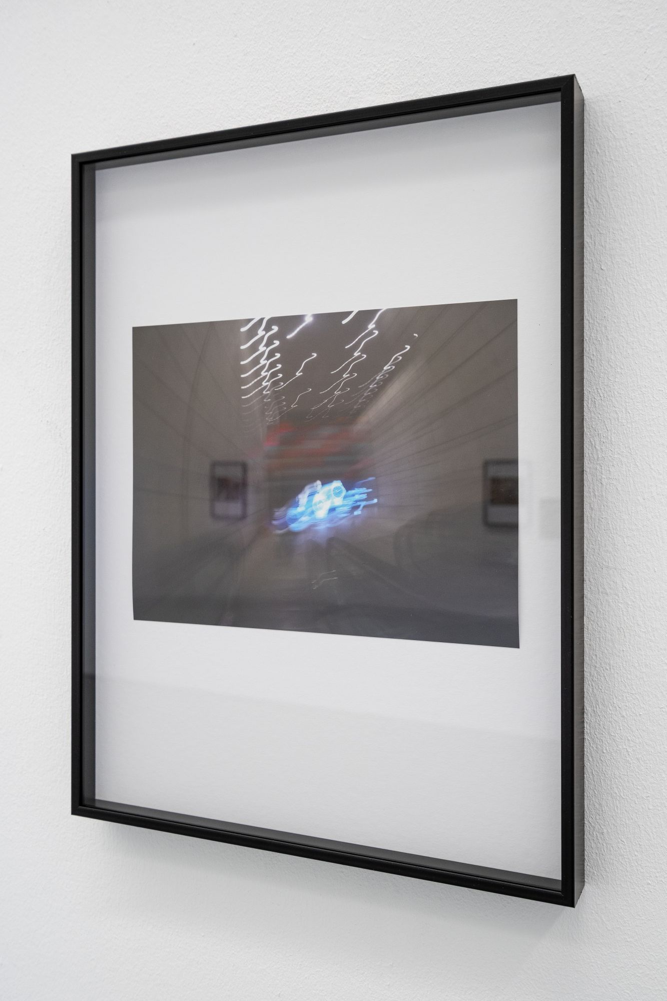 Die Serie „Belly“ wurde 2023 in der unterirdischen Shopping Mall der Londoner Canary Wharf aufgenommen, einem privatisierten und überwachten Raum. Eine an der Brust befestigte Action-Cam nahm im Zeitraffer-Modus alle zwei Sekunden ein Bild auf. Ich lief mehrere Stunden durch die Mall und die angrenzenden U-Bahnhöfe, so entstand eine Bildserie aus mehreren tausend automatisierten Aufnahmen. Da ich mich eher angespannt durch die Räume bewegte, waren einige Bilder extrem verwackelt. Durch die Bewegungen meines gestressten Körpers ziehen die Lichter Schlieren und die Architektur wird schemenhaft. Vor ein paar Monaten las ich einen Text von Rosalind Krauss über Minimal Art, in dem sich auf Merleau-Pontys „lived bodily perspective“ bezogen wurde. Dabei musste ich an die verwackelten Bilder denken, weil sie so viel Körper, Technik, Perspektive und Zufall miteinander verbinden.