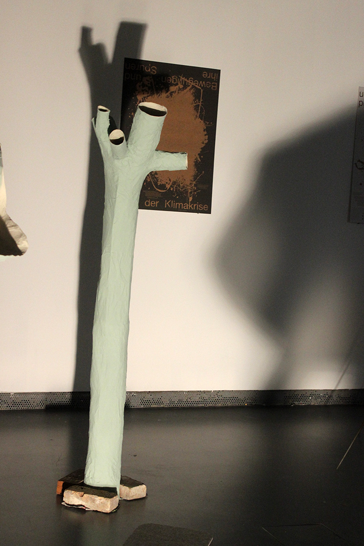 Die hinterlassenen Spuren aus der Koexistenz zwischen Natur und Mensch – mit diesem Themen-gebiet beschäftigt sich die Arbeit von Laura Hähnel, bestehend aus einer begehbaren Installation Bewegungen und ihre Spuren in Bezug auf die Klimakrise, sowie aus einem Buch mit dem Titel Drei Gespräche über den Boden. Hähnel selbst bezeichnet sich als Gestalterin, ihr sind vor allem die Vermittlungsformate wichtig. Ihrer Arbeit liegt die Überzeugung zugrunde, dass die ästhetische Praxis, somit auch das Grafik-Design, ein geeignetes Medium zur Wissensvermittlung, vor allem bezogen auf gesellschaftlich-politische Themen, ist. Der Zugang zur Erforschung der Wechselbeziehung zwischen der Außenwelt und dem Menschen erfolgte durch drei Interviews mit Personen aus unterschiedlichen Disziplinen: der Botanik, dem Gartenbau und der Juristik. Anhand dieser Gespräche sollen die bestehenden Verbindungen aufgezeigt und dokumentarisch in ihrem Buch festgehalten werden. Ihre Arbeit kann als ein gelungener Versuch einer gestalterischen Form der Wissenskommunikation bezeichnet werden.