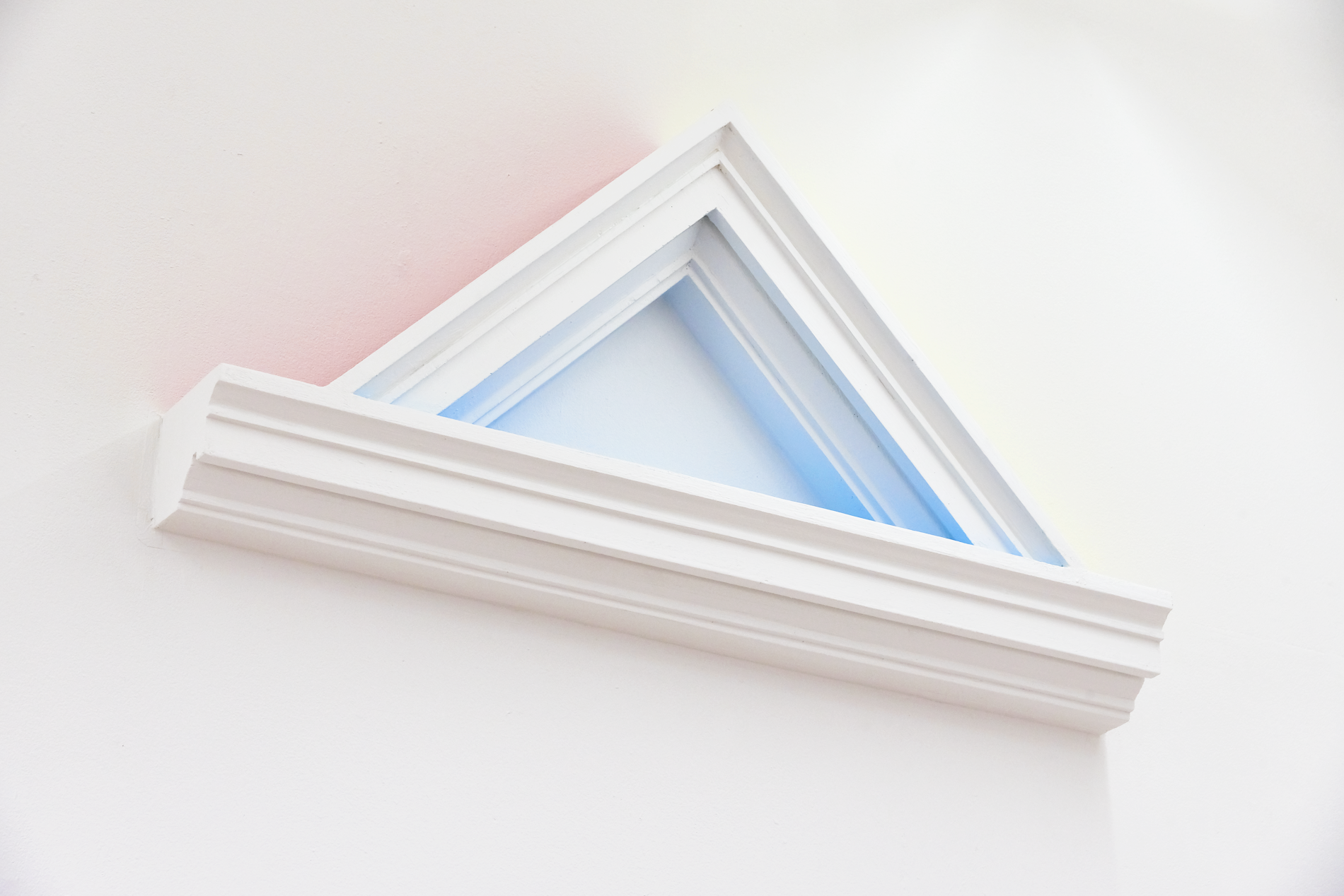 SUPRA, 2020 Acrylfarbe auf Dispersionsfarbe, Gips, Styrodur, Licht; 125 x 70 x 15 cm