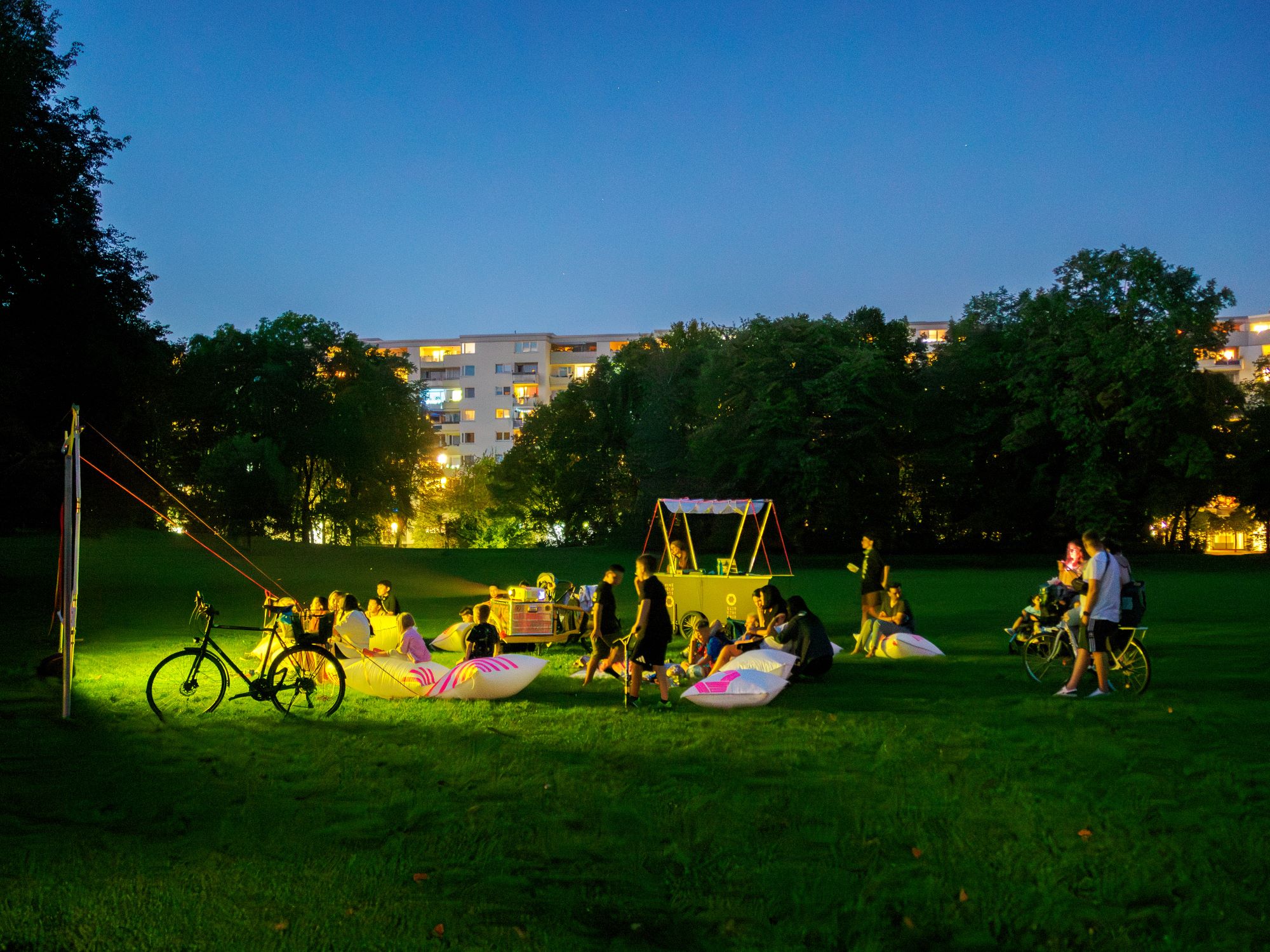 Mobil und dennoch mit dem Ort verbunden: Ciné Vélo Cité besetzt den öffentlichen Raum und bringt das Kino in die Stadt.