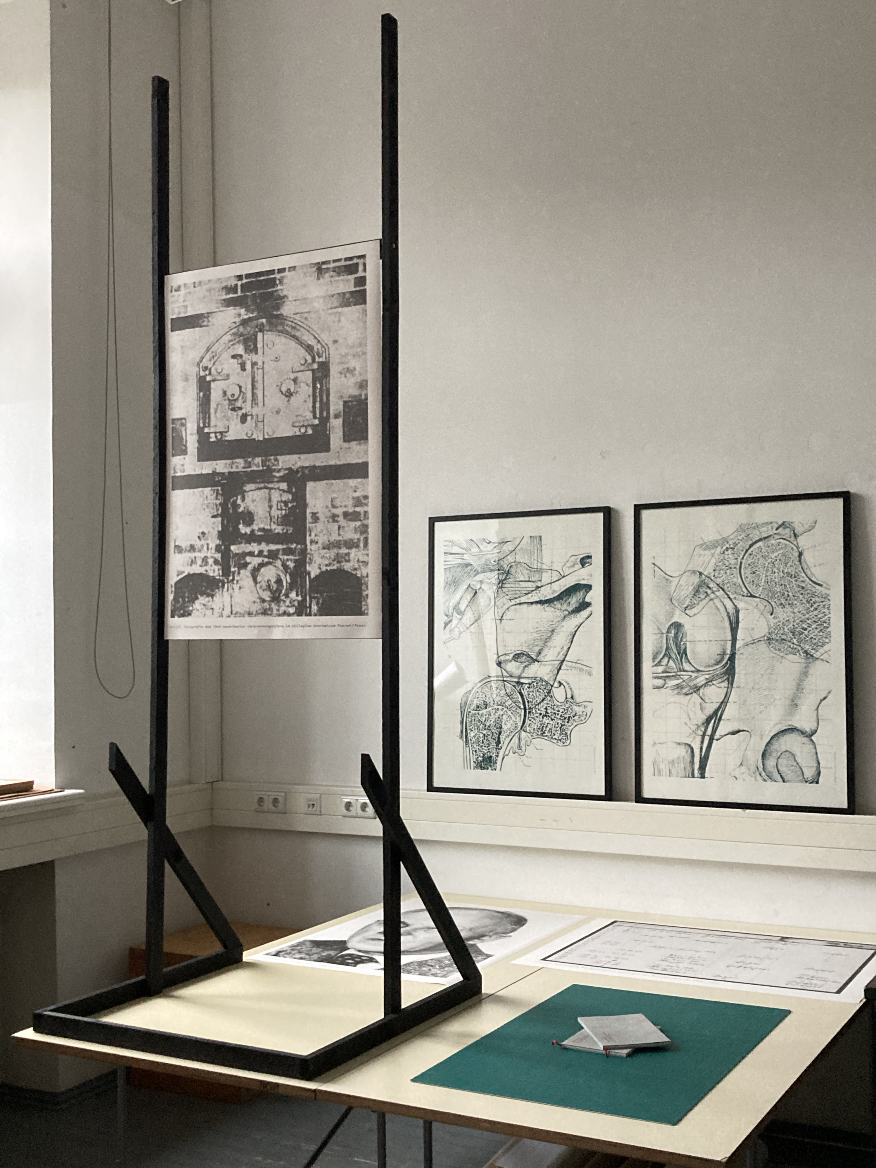 Drei Jahre intensiver Recherchen begannen mit dem Fund des Taschenbuches der Anatomie, das nach dem Zweiten Weltkrieg in BRD und DDR herausgegeben wurde. Nähere Betrachtungen offenbarten vielgliedrige Hintergründe in Bezug auf die Biografie des Herausgebers Hermann Voss. Gegenstand meiner Arbeit bilden dessen Aktivitäten zur Zeit des Nationalsozialismus und der DDR, in welcher Hermann Voss zu einem der bekanntesten Anatomen im deutschsprachigen Raum avancierte. Die Theoriearbeit meines Diploms entwickelte sich gleichzeitig zu einem Teil meiner praktischen Arbeit, die sich wiederum in einer raumgreifenden Ausstellungssituation zeigt. Recherchen zur Anatomie im Nationalsozialismus, zu ethischen Grundlagen in der Wissenschaft — speziell im Bereich der Medizin — sowie der Rolle von Gestaltung zwischen Information, Wissensvermittlung und Visualisierung erweitern dieses spezifische Thema. Sie führen es in allgemeingültige sowie für unsere heutige Zeit essenzielle Fragestellungen der Ethik und inhaltlichen Darstellung. Historische und neu entstandene Materialien, Texte und Fotografien werden offengelegt und der Zugang zu deren neuer Erscheinung in Form großformatiger Grafiken als Objekt-gewordene Zeugen gestalterisch ausgelotet.