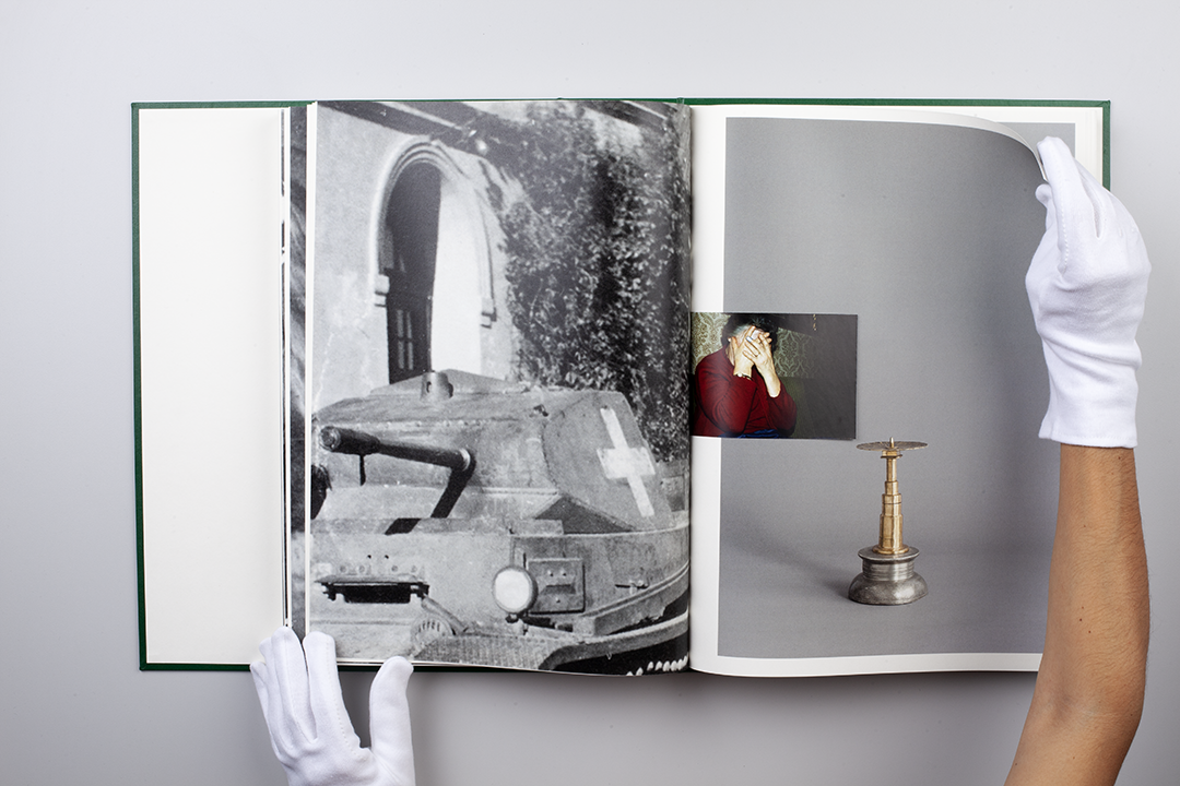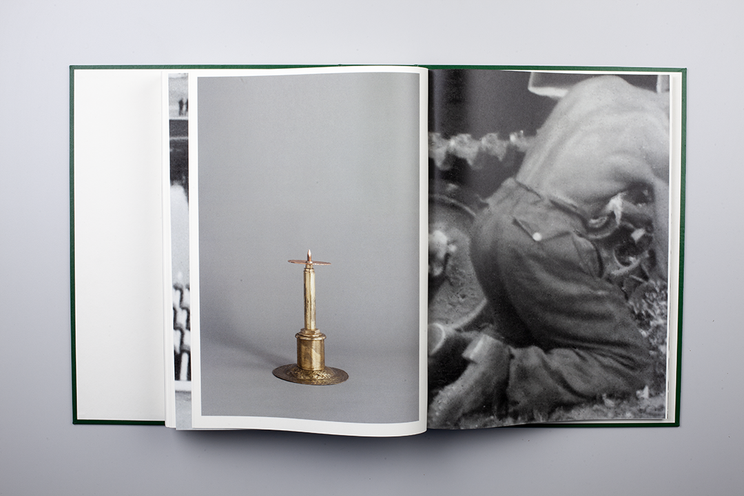 Die Arbeit enthält Abbildungen von 553 Metallobjekten, die mein Großvater im Keller unseres Wohnhauses hergestellt hat, Ausschnitte von Fotografien aus einem Umschlag mit der Beschriftung "Kriegsbilder", die ihn als Soldat im 2. Weltkrieg zeigen, sowie weitere Fotografien aus dem Archiv meiner Familie.