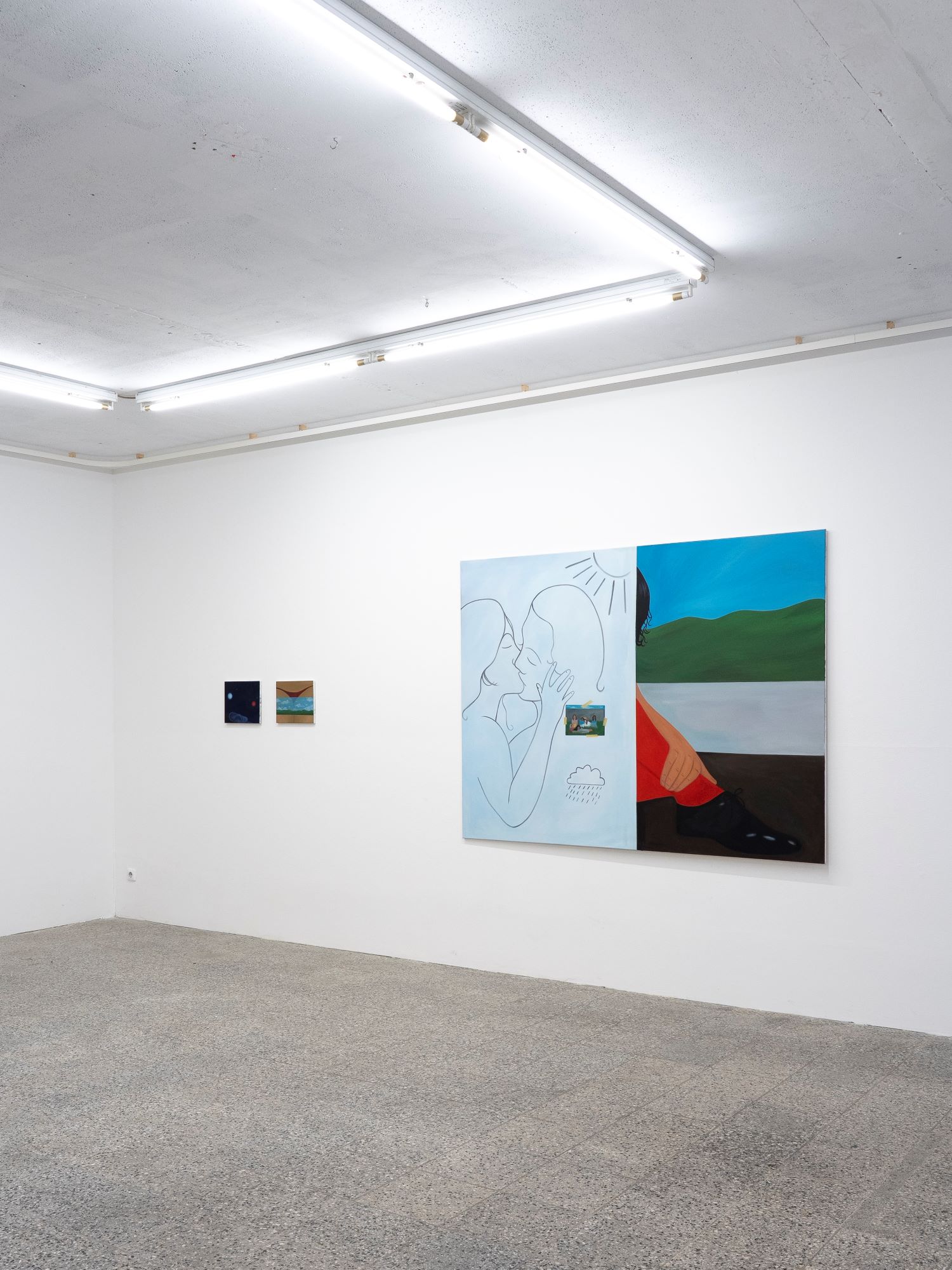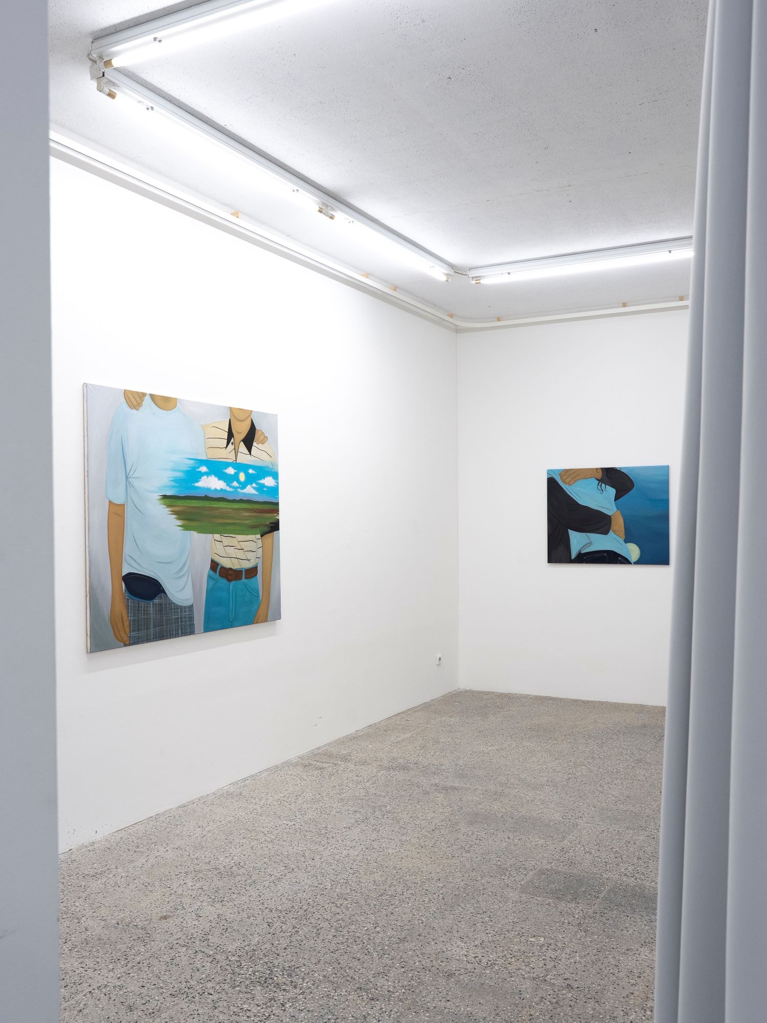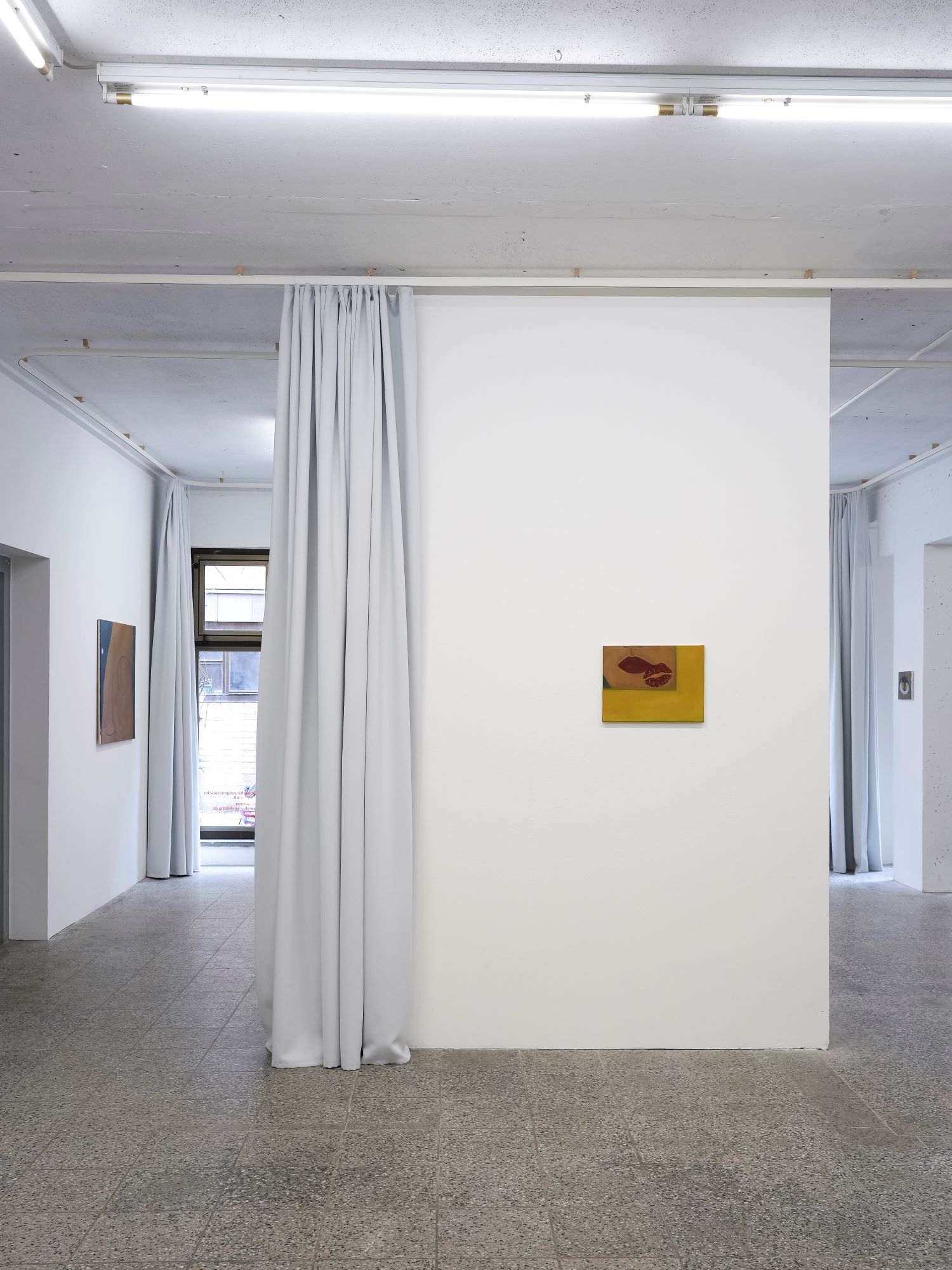 Der flache Farbauftrag und der unauffällige Duktus lassen eine glatte Fläche entstehen. Ähnlich wie ein Fenster oder ein Bildschirm zwingt sie die Betrachtenden zur voyeuristischen Anteilnahme an den sich ihnen darbietenden Szenen. Szenen, die oft zu persönlich sind, um ihre wahre Zeug:innenschaft einfordern zu können – denn ihre Lesbarkeit verschwimmt mit der Fremdheit der betrachtenden Person.