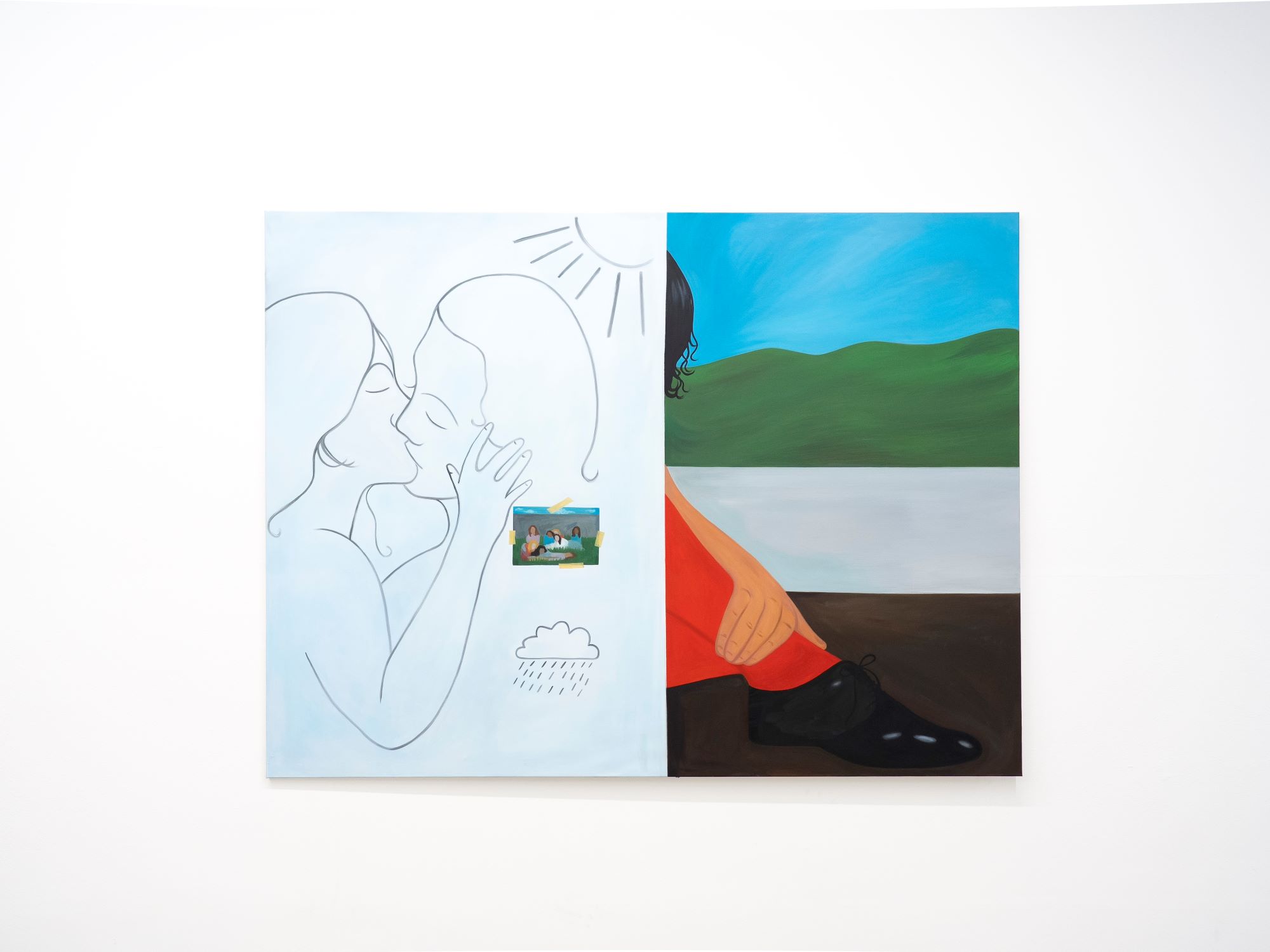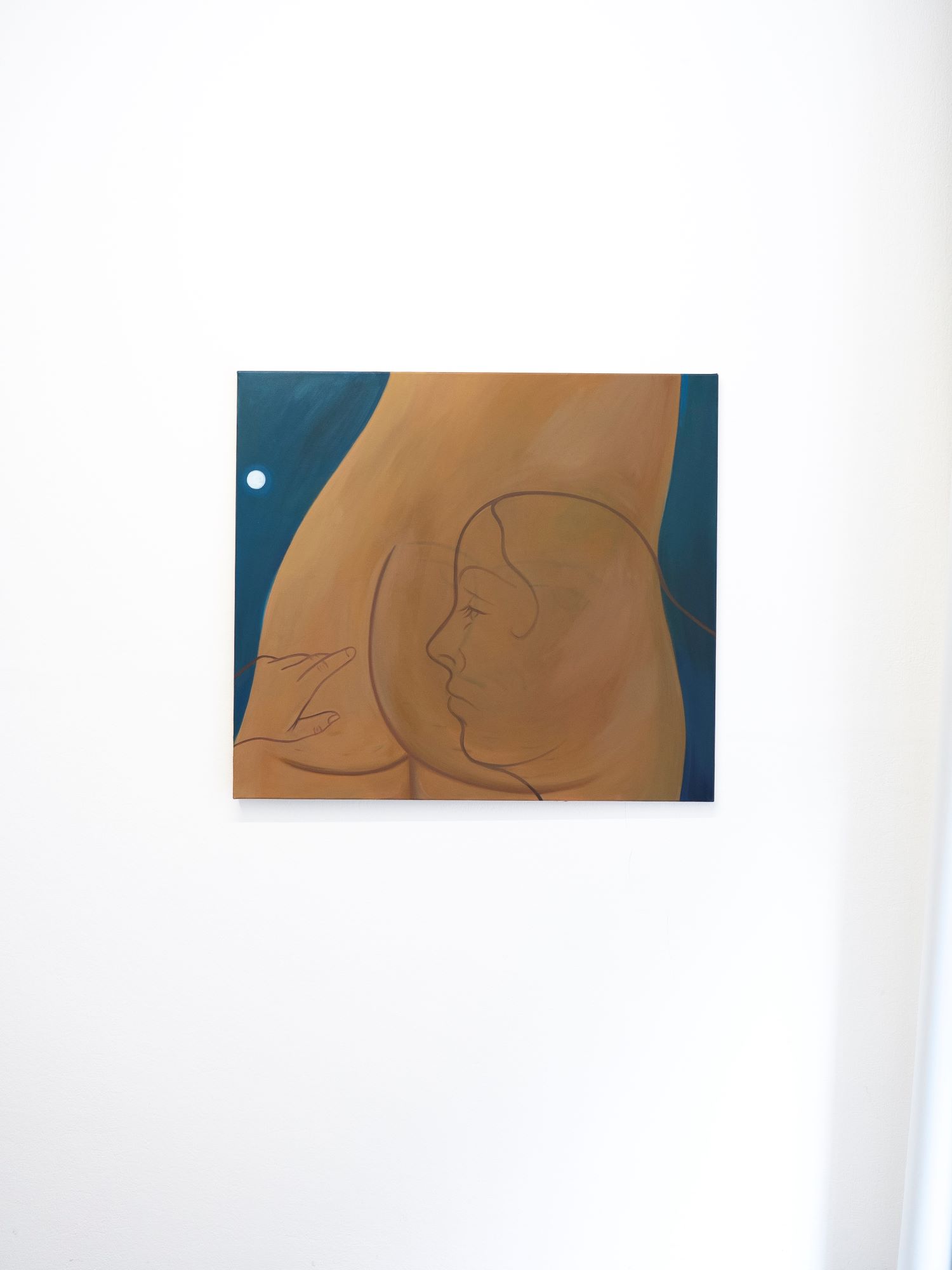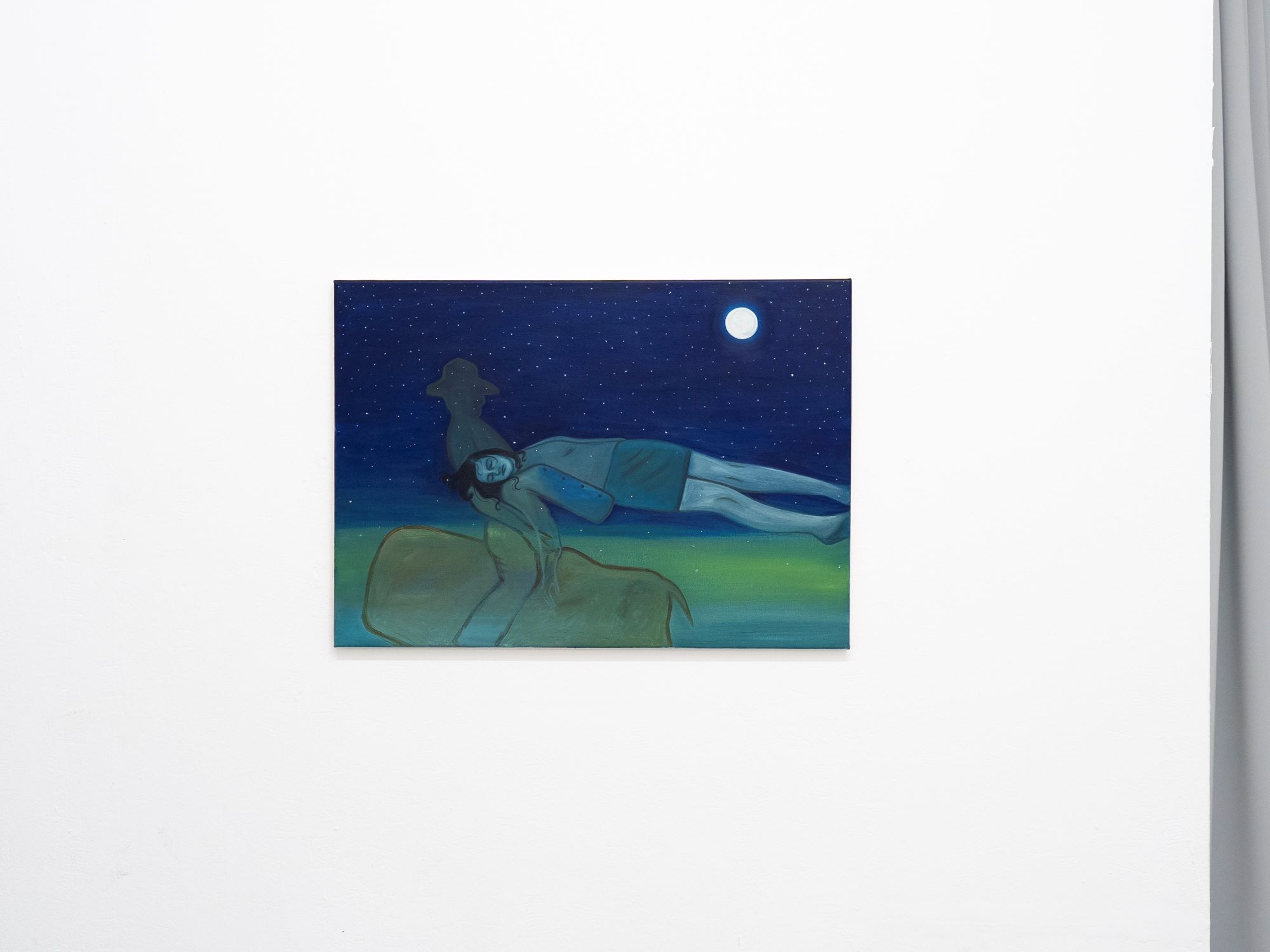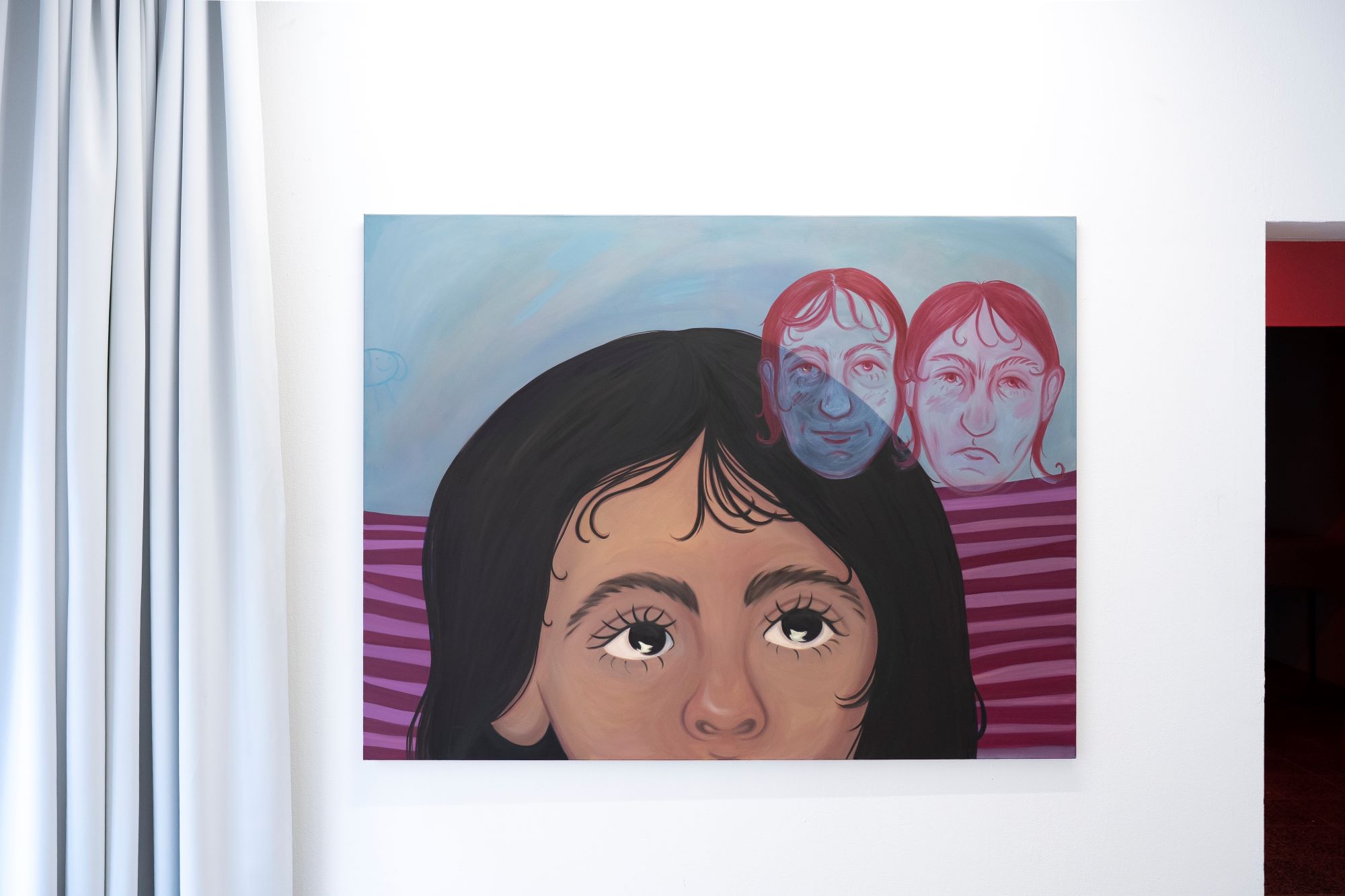 Der flache Farbauftrag und der unauffällige Duktus lassen eine glatte Fläche entstehen. Ähnlich wie ein Fenster oder ein Bildschirm zwingt sie die Betrachtenden zur voyeuristischen Anteilnahme an den sich ihnen darbietenden Szenen. Szenen, die oft zu persönlich sind, um ihre wahre Zeug:innenschaft einfordern zu können – denn ihre Lesbarkeit verschwimmt mit der Fremdheit der betrachtenden Person.