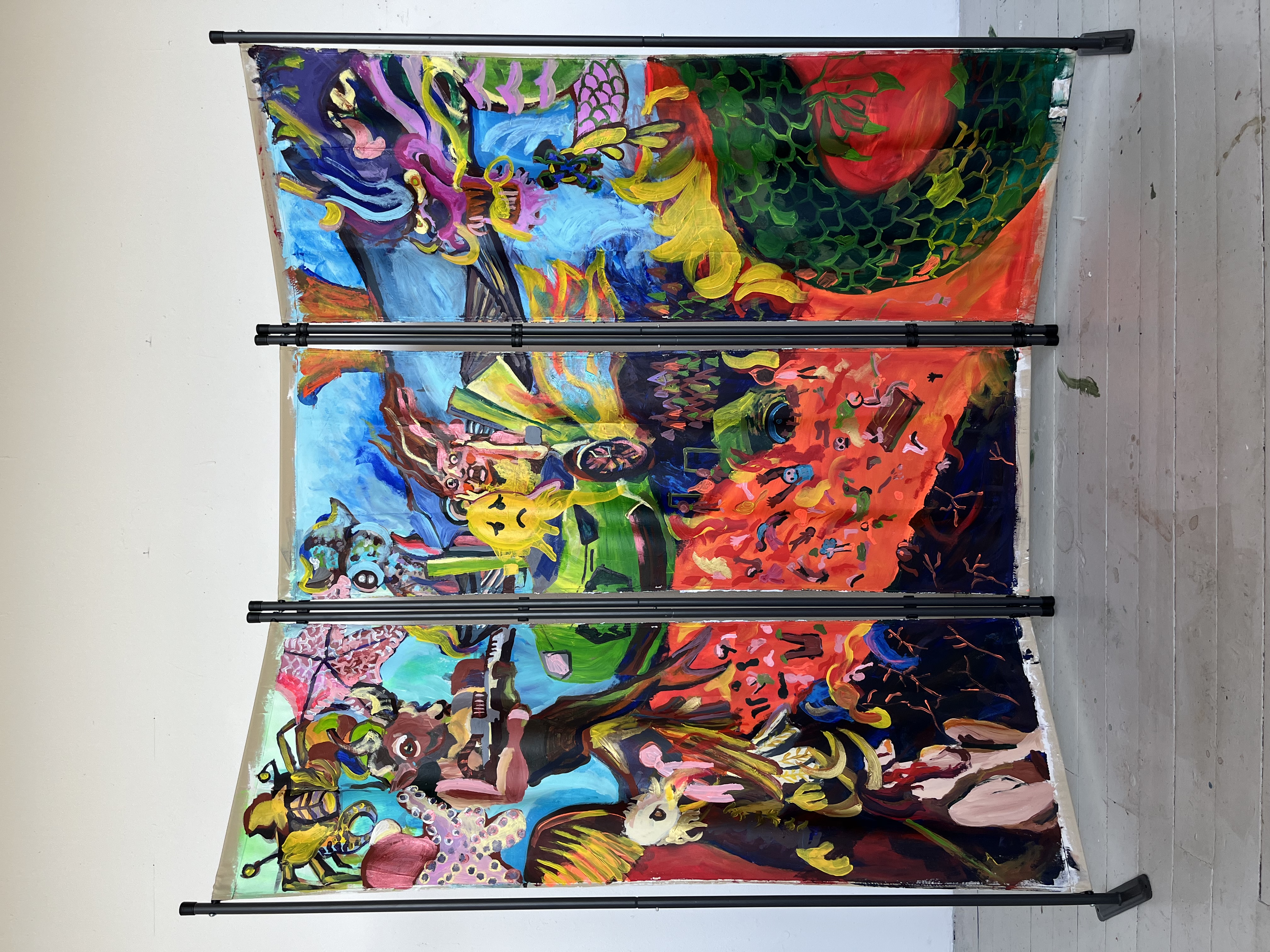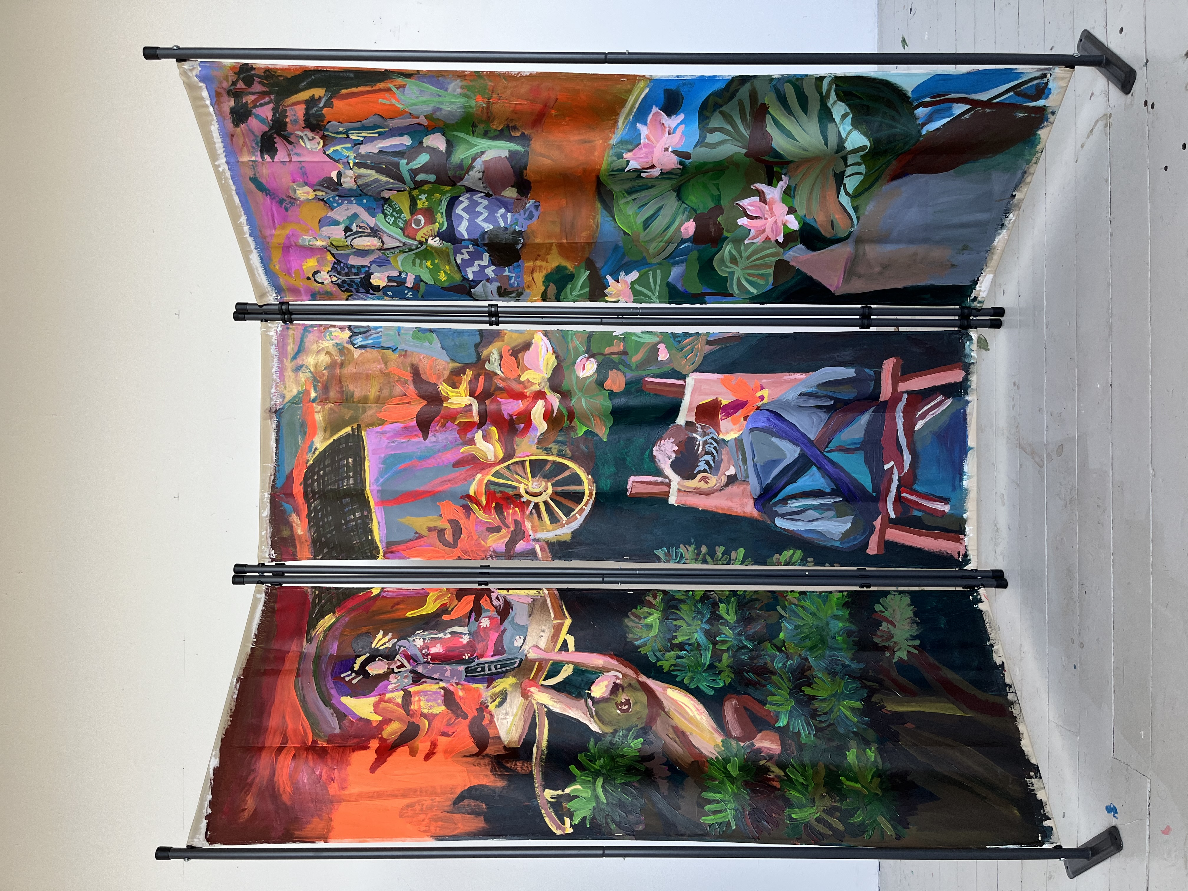 Auf einer Karte sind alle Arbeiten der HGB-Absolvent*innen angeordnet. Farbig dargestellt ergeben sich sechs tendencies: solid, soft, dense, open, dynamic, static. Jede*r Absolvent*in hat für das eigene Abschlussprojekt von diesen sechs unterschiedlichen Zuschreibungen keine, eine einzige oder mehrere ausgewählt, die z. B. im Hinblick auf den Inhalt und/oder die Materialität der eigenen Arbeit, und/oder völlig anderer Aspekte erfolgen (z.B. wie fühlt sich meine Arbeit für mich an?). Auf diese Weise machen die Gestalter*innen Zuschreibungen der künstlerischen/gestalterischen Arbeiten auf verschiedene Weise interpretierbar und geben allen Künstler*innen die Möglichkeit, eine individuelle Bedeutung für ihre eigene Arbeit zu finden. Das Konzept von Carla Selva Matthes und Ris Pascoe schlägt damit eine offenere Neustrukturierung von Organisationssystemen, im Unterschied zur Unterteilung in Fachklassen oder Medien, hin zu einer assoziativen Repräsentation vor, die nach einem „common ground“ zwischen den Disziplinen sucht. Das Venn-Diagramm stellt alle möglichen Relationen der vertretenen Zonen dar. Die fachgebiets- und fachklassenübergreifenden Begriffe schaffen neue Nachbar*innenschaften und Verwandtschaften einzelner Arbeiten zueinander und geben in ihrer Gesamtheit möglicherweise Aufschluss über Tendenzen, die einen oder mehrere Jahrgänge auszeichnen.