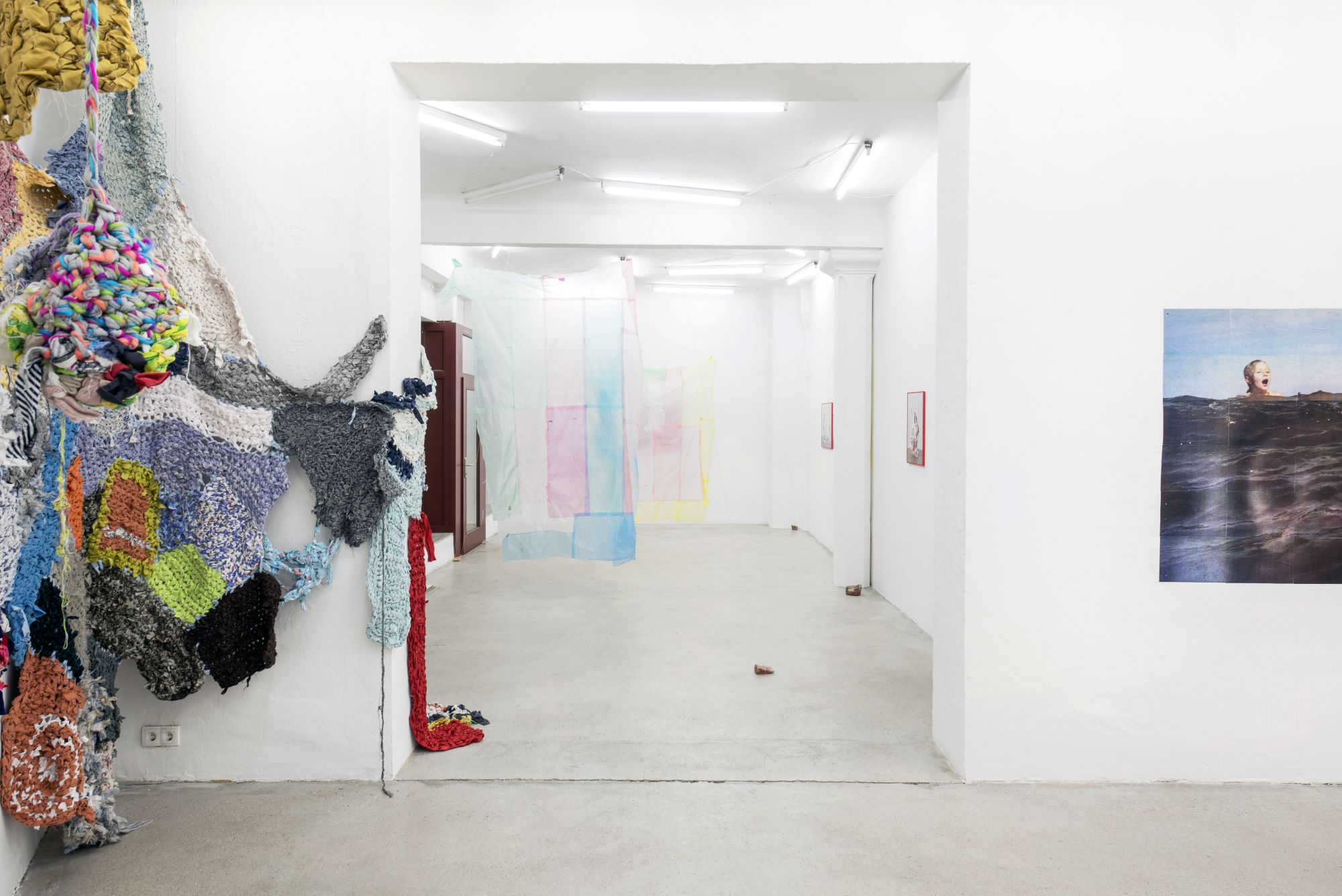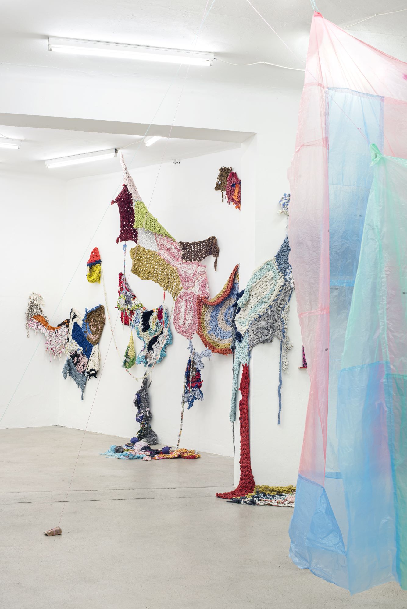Werke v.L.n.R.: Etna Wucherung, Textil fortlaufend seit 2020 Im Westen wird sie untergehn, 2022