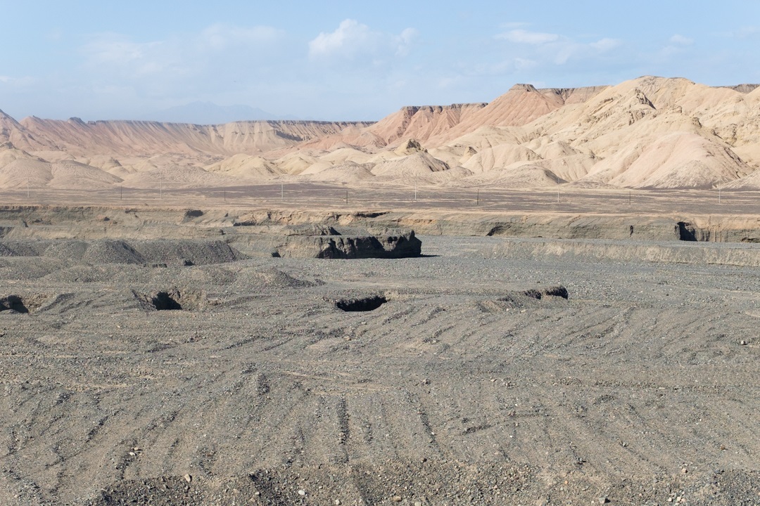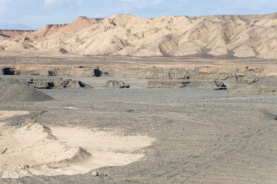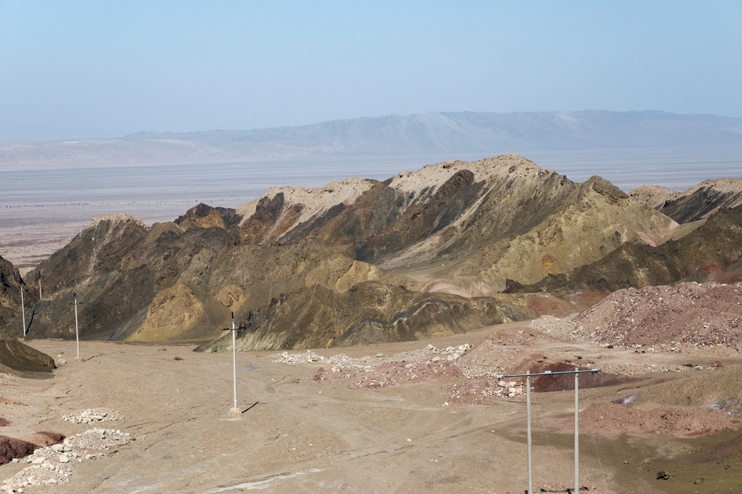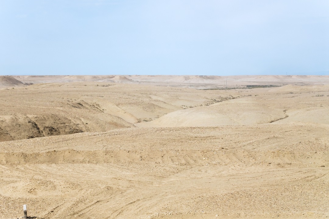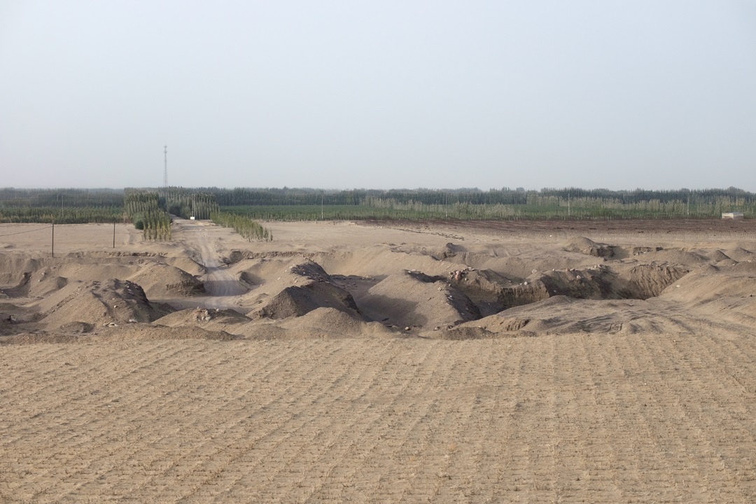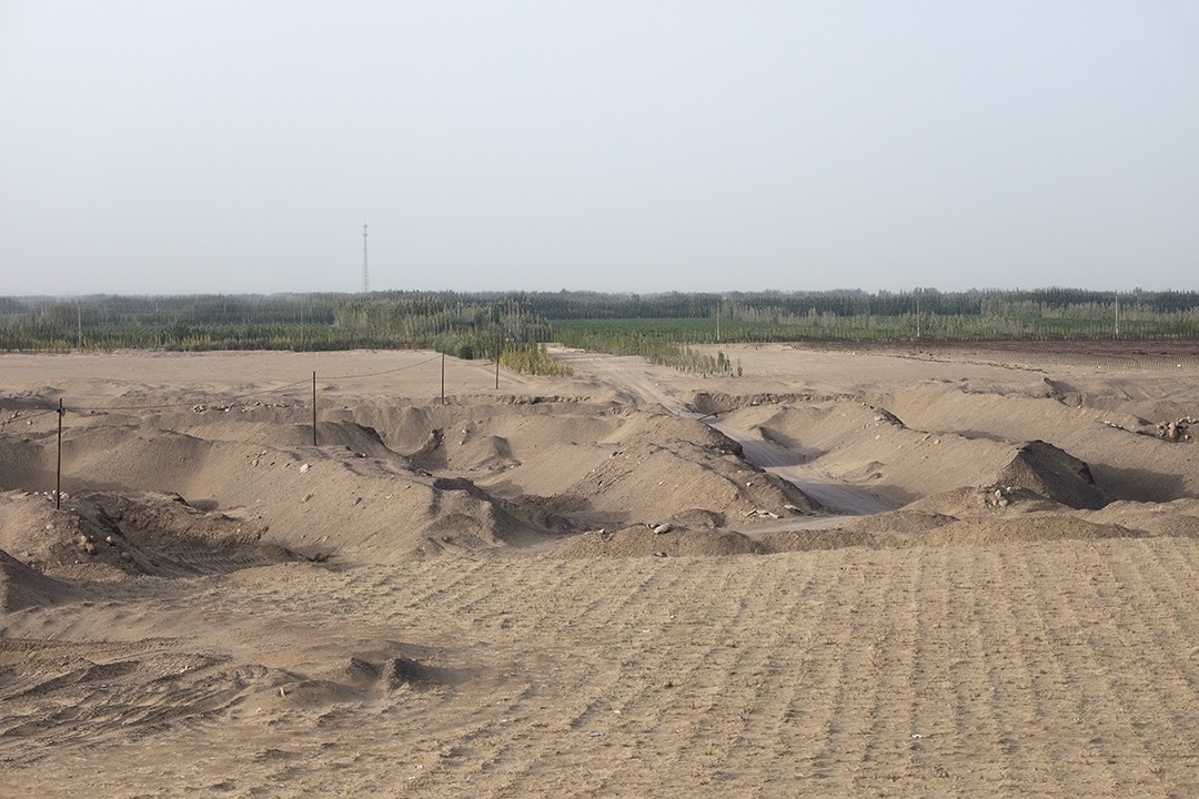 Für die Arbeit VIA wurden bestimmte Parameter gesetzt: auf einer insgesamt 12.000 km langen Strecke durch die westchinesische Region Xinjiang fotografierte Julia Debus ausschließlich im Transit zwischen Städten und Orten am Tag permanent aus dem fahrenden Zug heraus.