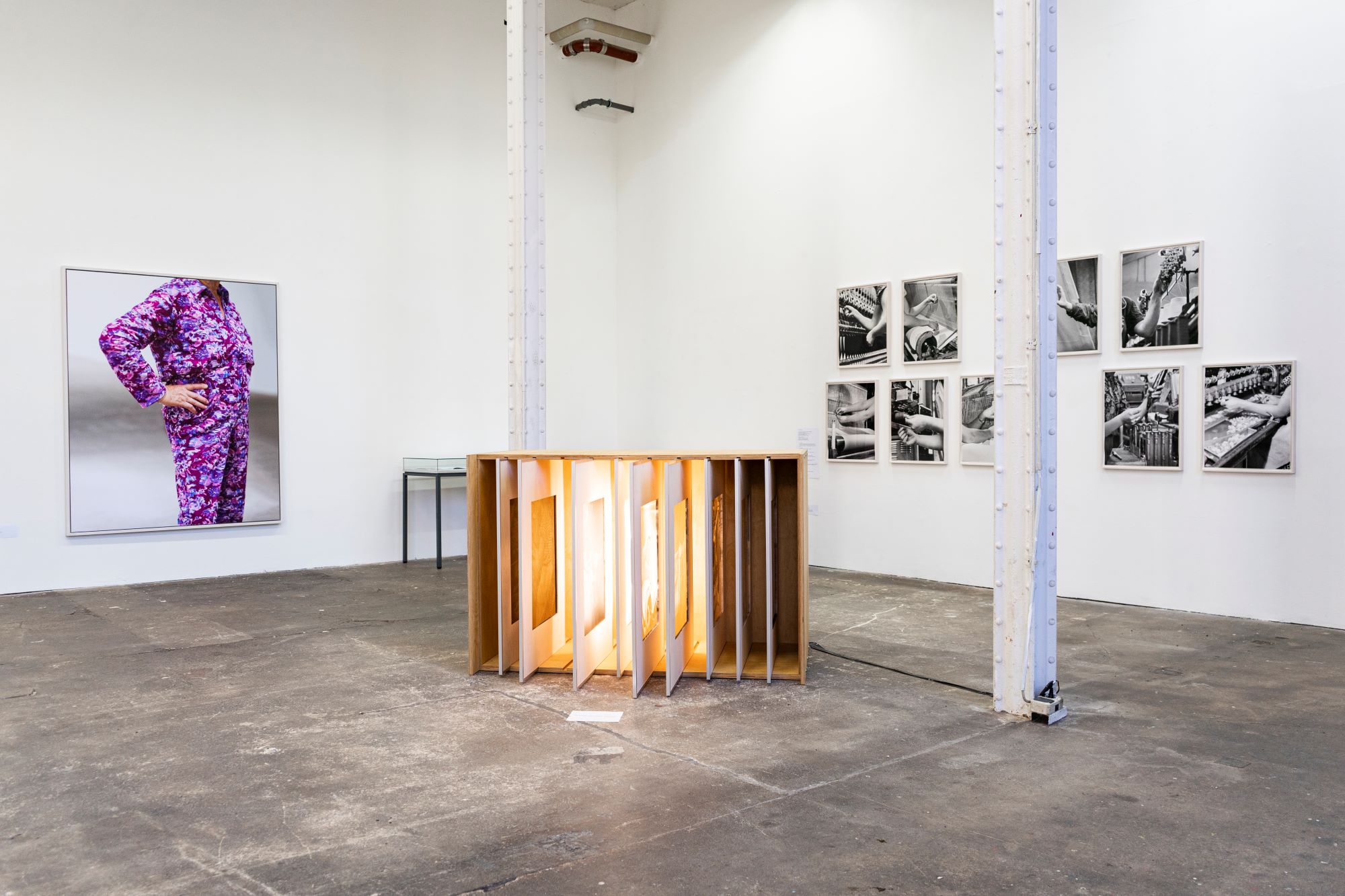 Der fragmentarische Blick, der sich durch Ramona Schachts Arbeiten zieht, verweist in seiner Ausschnitthaftigkeit auf die Brüche und Leerstellen der Geschichte: Biografien und -schicksale von Frauen, die ausgelassen wurden oder (noch) nicht geschrieben sind. Mit p.a.a.p entwirft sie ein Archiv aus neuen Kategorien, das an dieser Stelle ansetzt und zugleich als Erinnerungsort industrieller Frauenarbeit sowie Denkraum ihrer (Un)Sichtbarmachung fungiert. Dabei macht die Künstlerin das Archiv selbst als aktivierbaren und performativen Erinnerungskörper erfahrbar: Die Installation Archive of female work gleicht einem überdimensionierten Dia-Kasten (Slide-Box) und steht repräsentativ für die unzähligen Archivboxen, die sie im Zuge ihrer Recherchearbeit in den verschiedenen Archiven durchforstete. Sie enthält jeweils ein stellvertretendes Bild aus den einzelnen Sektionen und kann von den Besucher:innen bedient, die Bilder selbst hervorgezogen werden, um selbst die Rolle – oder den Körper – der Archivarin einzunehmen. P.a.a.p. entpuppt sich hier als Speicher, der fortlaufend um weitere Orte und Inhalte erweitert werden kann und einen neuen, übergreifenden und wachsenden „Gemeinschaftskörper“ formt. Damit hinterfragt die Werkgruppe nicht zuletzt auch die Funktion und die „Möglichkeitsformen“*2 fotografischer Archive, diese nicht allein als Orte der (Auf)Bewahrung von Vergangenheiten zu begreifen, sondern insbesondere als Orte der Umdeutung und Transformation für die Gegenwart.