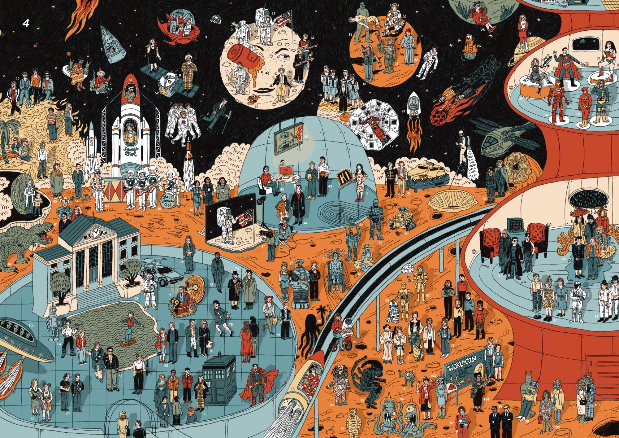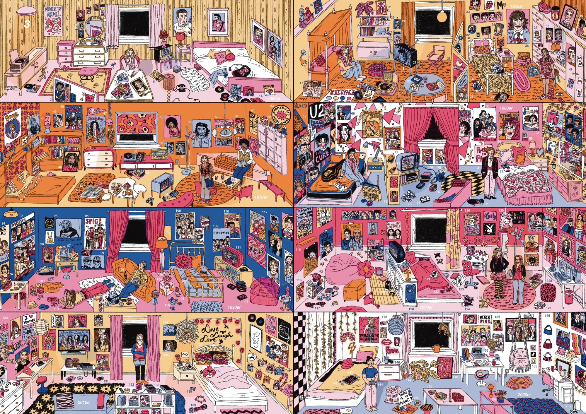 Entstanden ist ein Wimmelbuch der besonderen Art: In acht großformatigen Bildern mit über achthundert Elementen aus der Popkultur spiegelt sie ihre ganz eigene persönliche Popkultur wider. Die bunten, kreativen und detaillierten Illustrationen bilden nicht nur die heutige Popkultur ab, sondern gehen bis ins 19. Jahrhundert zurück – sozusagen erlebst du hier popkulturelle Phänomene aus drei Jahrhunderten.