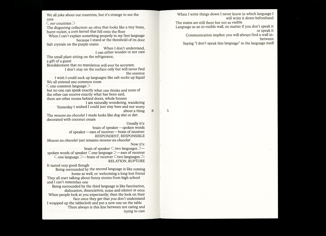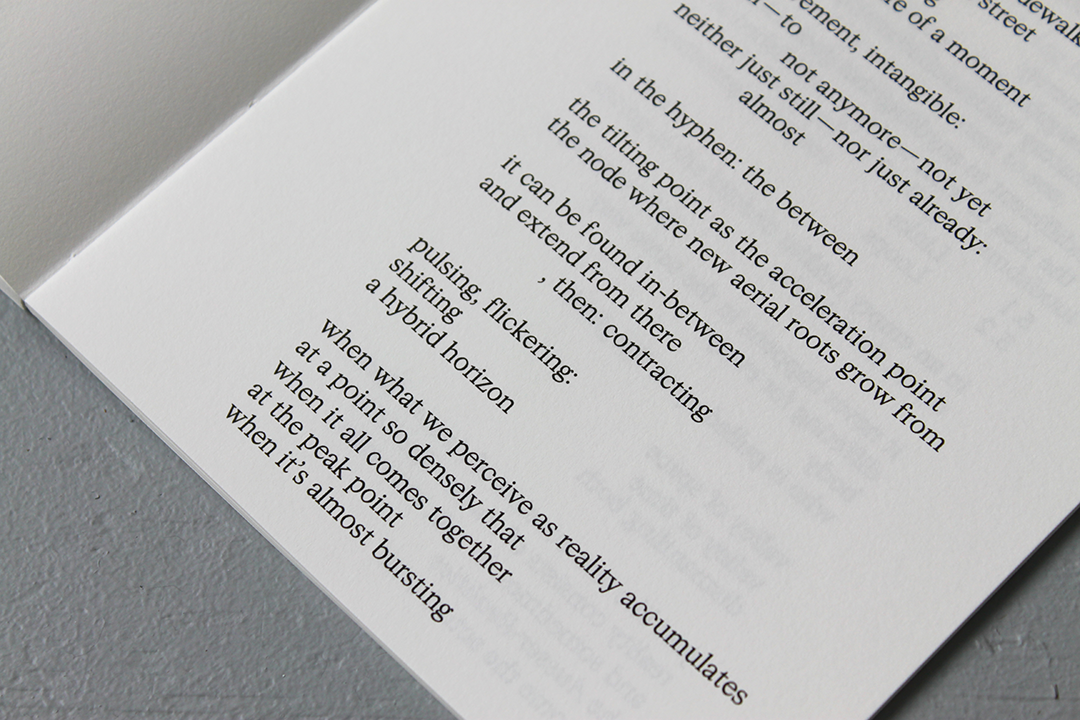 Auf einer Karte sind alle Arbeiten der HGB-Absolvent*innen angeordnet. Farbig dargestellt ergeben sich sechs tendencies: solid, soft, dense, open, dynamic, static. Jede*r Absolvent*in hat für das eigene Abschlussprojekt von diesen sechs unterschiedlichen Zuschreibungen keine, eine einzige oder mehrere ausgewählt, die z. B. im Hinblick auf den Inhalt und/oder die Materialität der eigenen Arbeit, und/oder völlig anderer Aspekte erfolgen (z.B. wie fühlt sich meine Arbeit für mich an?). Auf diese Weise machen die Gestalter*innen Zuschreibungen der künstlerischen/gestalterischen Arbeiten auf verschiedene Weise interpretierbar und geben allen Künstler*innen die Möglichkeit, eine individuelle Bedeutung für ihre eigene Arbeit zu finden. Das Konzept von Carla Selva Matthes und Ris Pascoe schlägt damit eine offenere Neustrukturierung von Organisationssystemen, im Unterschied zur Unterteilung in Fachklassen oder Medien, hin zu einer assoziativen Repräsentation vor, die nach einem „common ground“ zwischen den Disziplinen sucht. Das Venn-Diagramm stellt alle möglichen Relationen der vertretenen Zonen dar. Die fachgebiets- und fachklassenübergreifenden Begriffe schaffen neue Nachbar*innenschaften und Verwandtschaften einzelner Arbeiten zueinander und geben in ihrer Gesamtheit möglicherweise Aufschluss über Tendenzen, die einen oder mehrere Jahrgänge auszeichnen.
