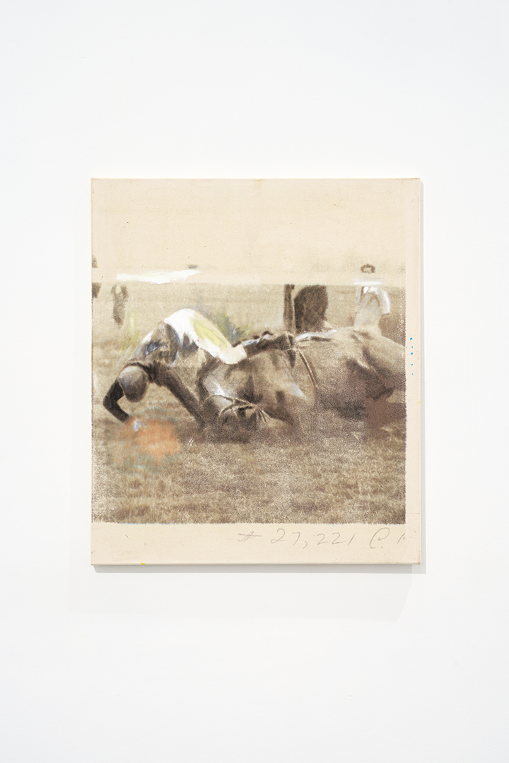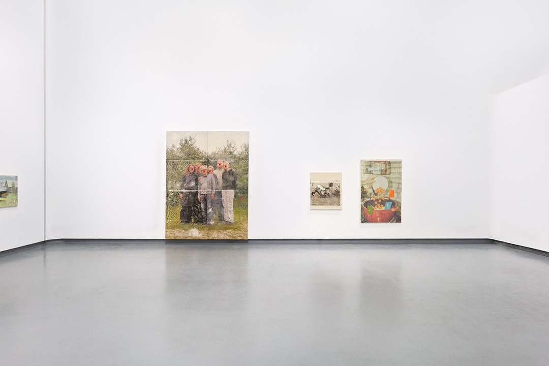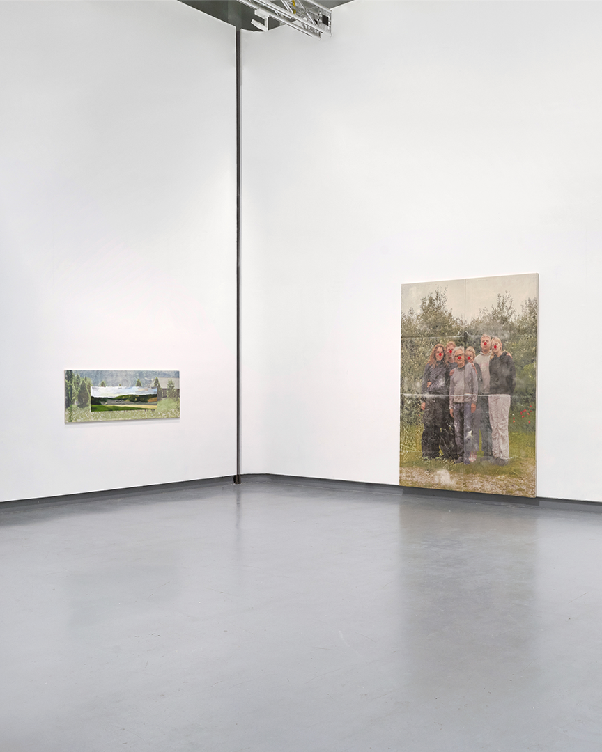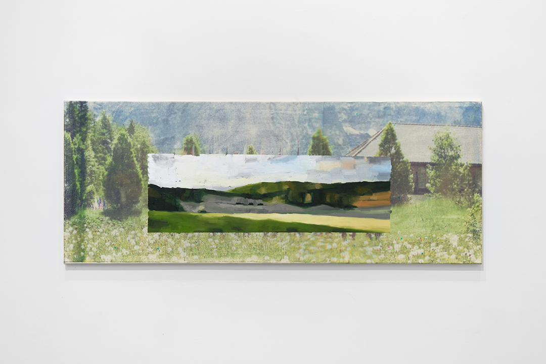 Using a transfer printing technique I developed, I transfer digital photographs onto canvas, where they merge with painterly traces and techniques. In this process, the print itself becomes painting, as its meaning and materiality shift. For me, this transfer is not just a technical means but a painterly act that shapes composition. The background—the transferred photograph—determines and shapes the foreground, creating a starting point beyond the blank canvas.