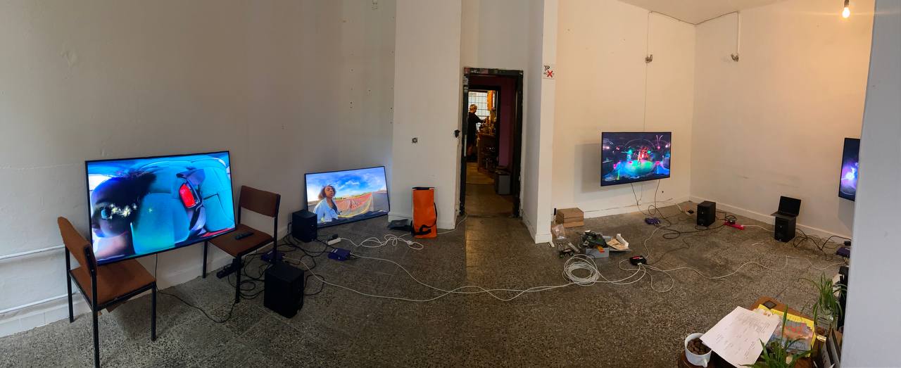 Ich habe in Kooperation mit anderen Künstler*innen ein Sammelsurium an Zitaten der Originalvideos, einiger Medienauftritte der Pop-Sängerinnen und unseren Empfinden aufgebaut und dieses gefilmt. Die Kurzfilme sind mehr wie ein Gesamteindruck ohne Erzählung zu verstehen. Die Arbeit ist in Anlehnung an die Künstlerinnengruppe Erfurt, an deren Schnitte und Filmaufbau ich mich orientiert habe. Die Filme sind mit einer 360° Kamera gedreht. Neben der Prüfung läuft die Ausstellung weiter mit diversen Events, wo andere Künstler*innen nochmal auf die Ausstellung reagieren. ZB musikalisch und performativ und in Form von Dialogangeboten.