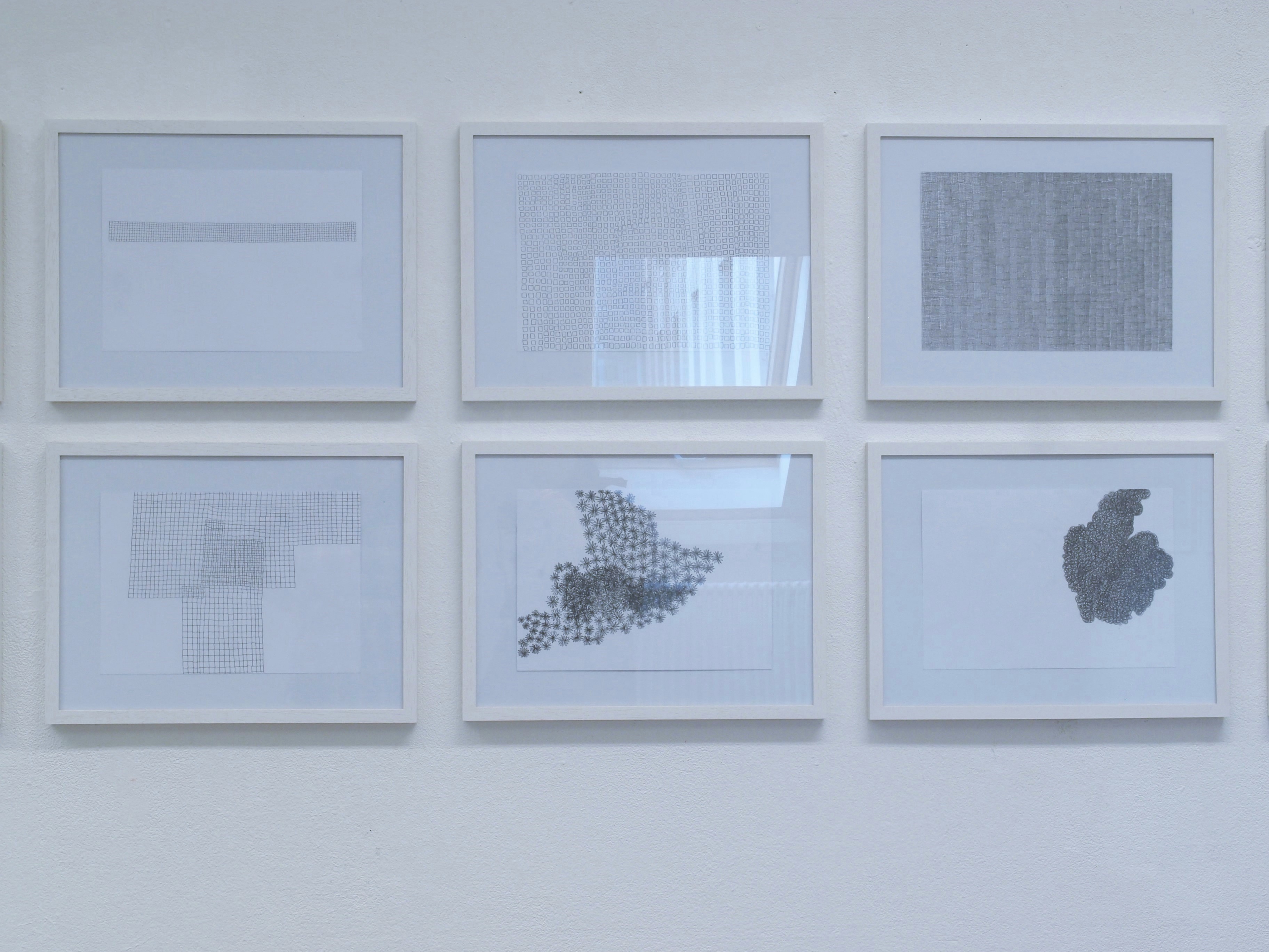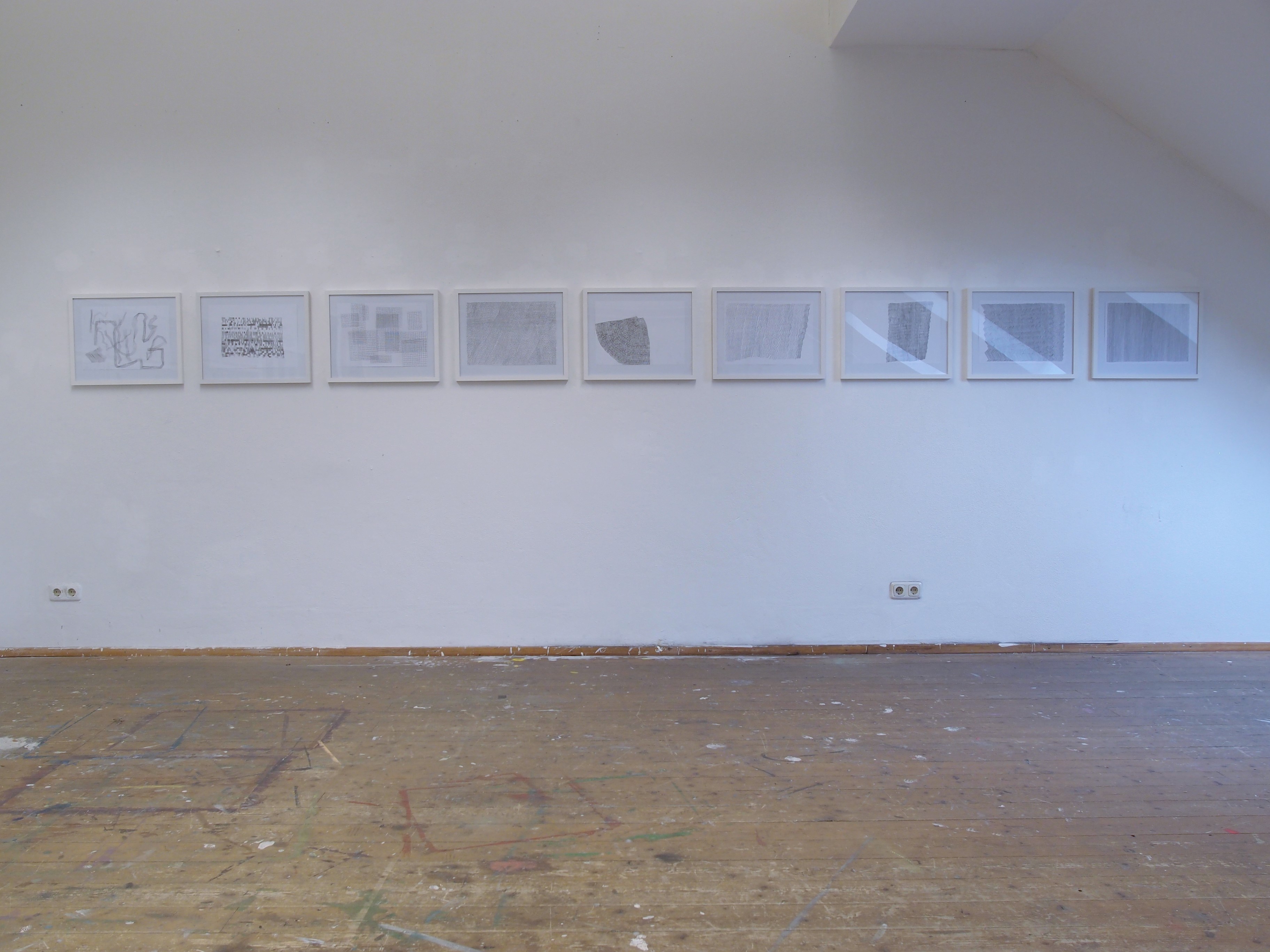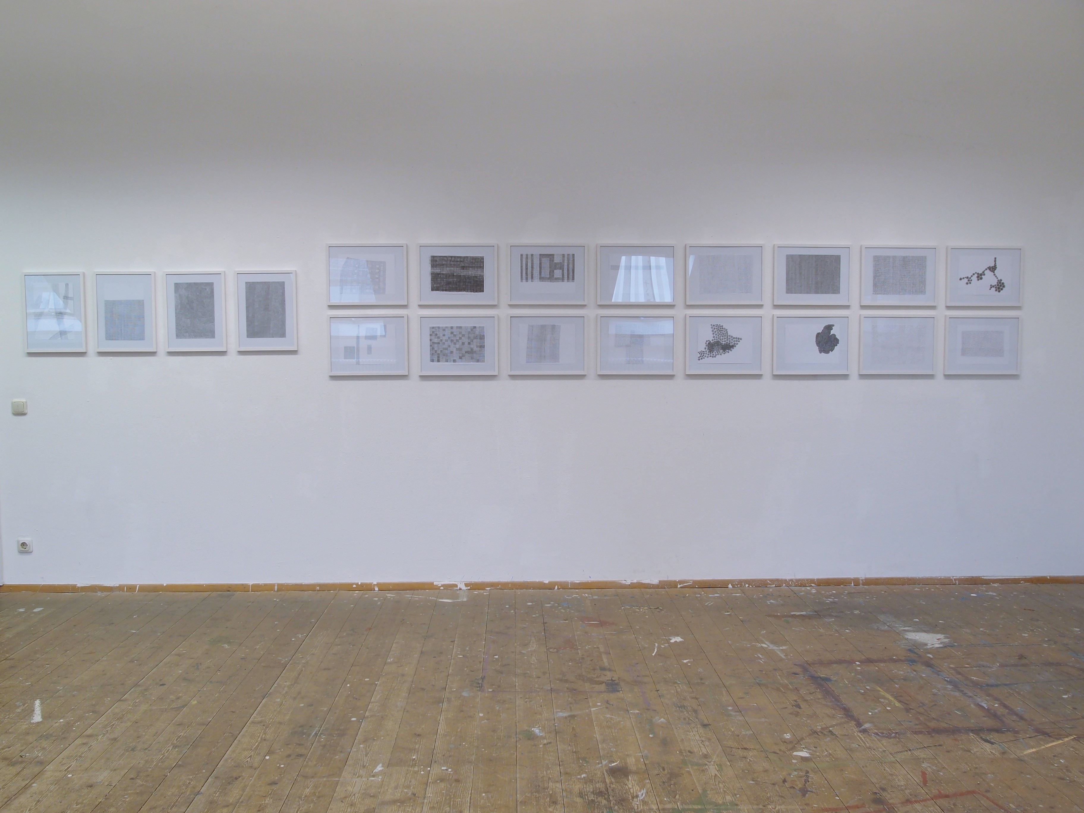 Die Diplomarbeit „Zeichnungen“ besteht aus 29 Zeichnungen. Die Arbeiten sind ohne Titel. Bleistift auf Papier. Sie besteht aus 4 x A4 Hochformat, 16 x A4 Querformat und 9x A3 Querformat. Die Zeichnungen werden in weißen Holzrahmen präsentiert.