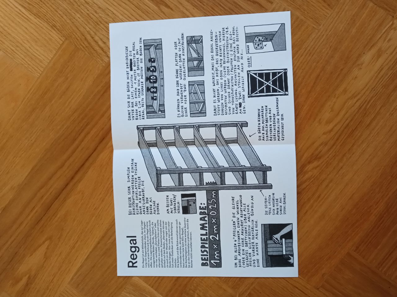 In view of the climate crisis, we as a society are faced with major challenges. Namely finding new ways of dealing and using „things“. This means buying more used items, caring for and repairing our things, thereby extending their lifecycle. Sharing things with others. Treating them with appreciation and respect instead of carelessly throwing them in the trash. What this could look like is being investigated by the work Das, was da ist. The book draws attention to the waste that happens around us every day. It invites you to look at waste more carefully and find out what can really go away and what can be reused as material. It also presents some construction instructions and ideas on how we can build things for our everyday lives from waste. Various objects and furniture are presented, for example welded from scrap or built from wood from garbage containers.