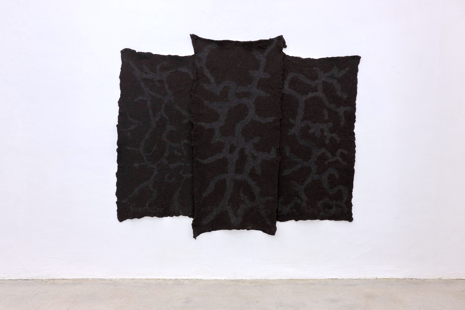 Titled FEUERTEUFEL, Sophie Constanze Polheim’s diploma exhibition brings together sculptures, textile works, video fragments, readymades and a collection of essays. The neologism Feuerteufel (ger.) describes arsonists and links the gesture of setting sth. on fire to the figure of the devil. It direct translates as firedevil - a term that relates to fire tornados which occasionally occur during intense wildfires. The exhibition forms an associative structure which centers around questions regarding the ambivalent relationships between humans and fire. It unfolds around the myth of Phaethon, depictions of the devil from early 20th century Austria, and fire customs surrounding the 1st of May - recontextualised in the present and relocated in feminist and ecological perspectives.