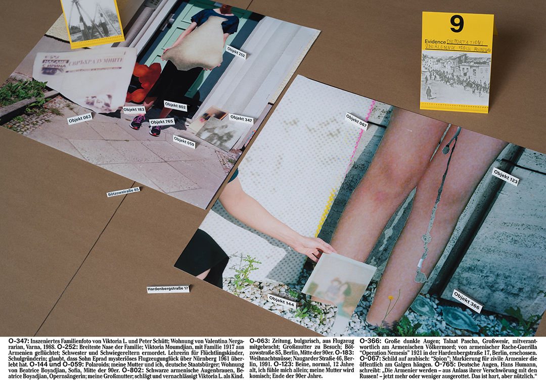 Ich verwende Fotografie, Collage und Text um eine non-lineare Geschichte zu erzählen, die vor meiner Geburt beginnt. Ich habe sowohl meine privaten Familienfotos als auch historische Fotografien digitalisiert, vergrößert, Objekte herausgeschnitten und sie teilweise im Berliner Stadtraum, teilweise vor schwarzem Hintergrund aufgenommen, und archiviert. Die Erzählung bewegt sich entlang meiner Biographie und berührt unterschiedliche zeitgeschichtliche Ereignisse wie den sozialistischen Totalitarismus in Bulgarien und der DDR, Migration und Wende, Armenischer Genozid, Stasi, Trauma und Familie. Derzeit existiert eine Serie von siebzig Fotografien, in Bearbeitung sind weitere hundert Fotografien.