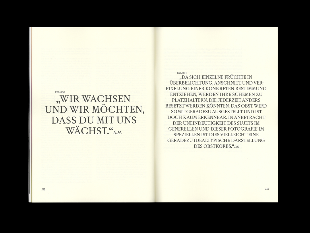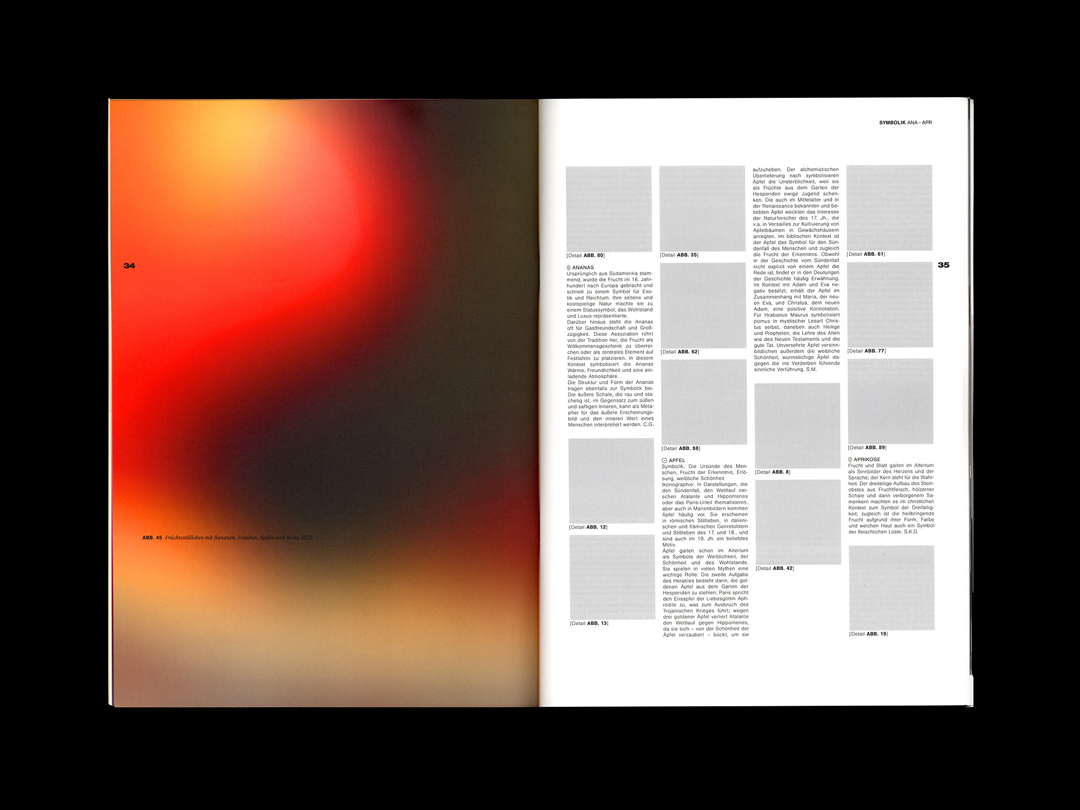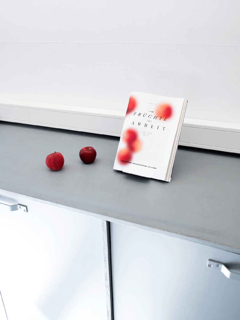 Früchte der Arbeit uses the method of imagination. Analyses of various fruit still lifes initially leave the viewer in the dark. The interruption of the texts by enthusiastic job advertisements adds to the confusion. Until it becomes increasingly clear that the still lifes being analyzed are artworks by companies presenting their fruit basket.