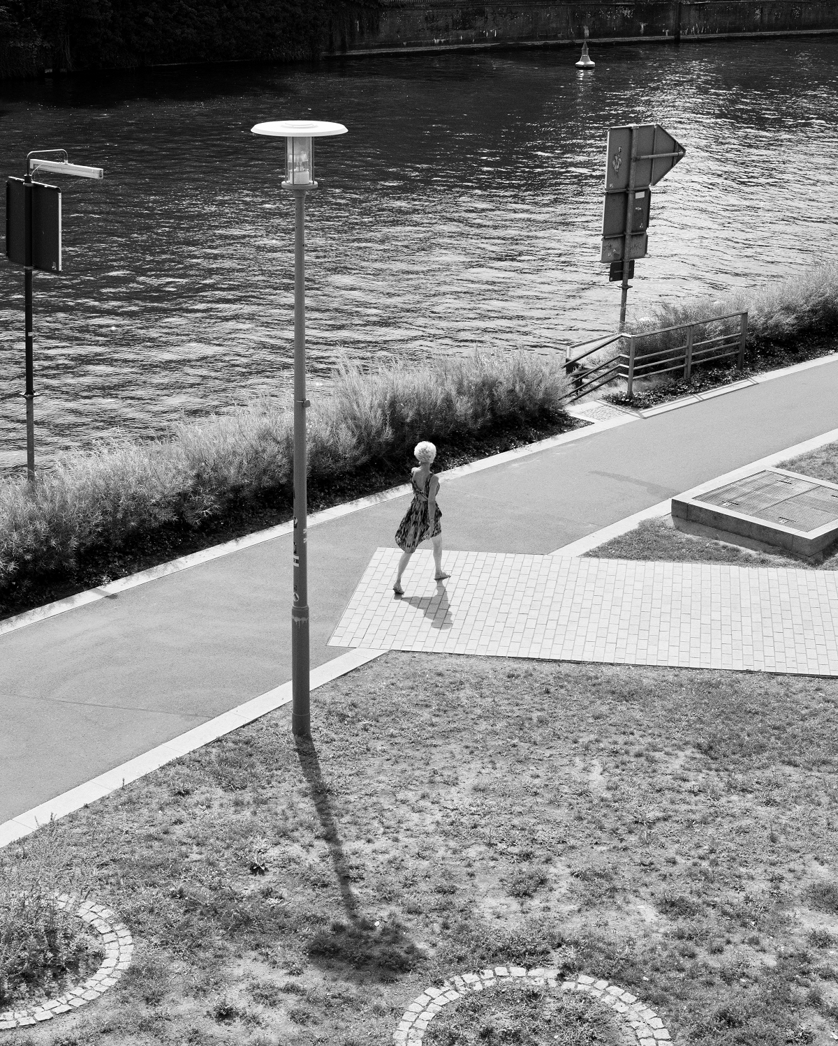 Die schwarzweißen Fotografien zeigen Momente urbaner Konstellationen von Menschen und ihrer Umgebung.