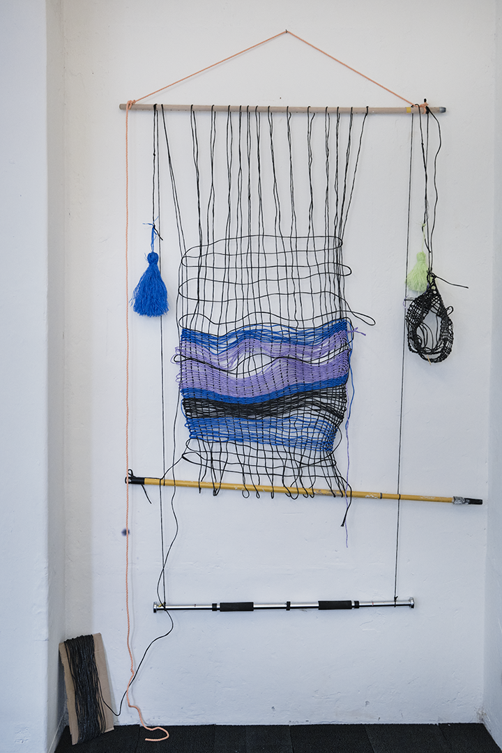 untitled | Klimmzugstange, Teleskopstange, Besenstiel, Pressengarn | 2021 |