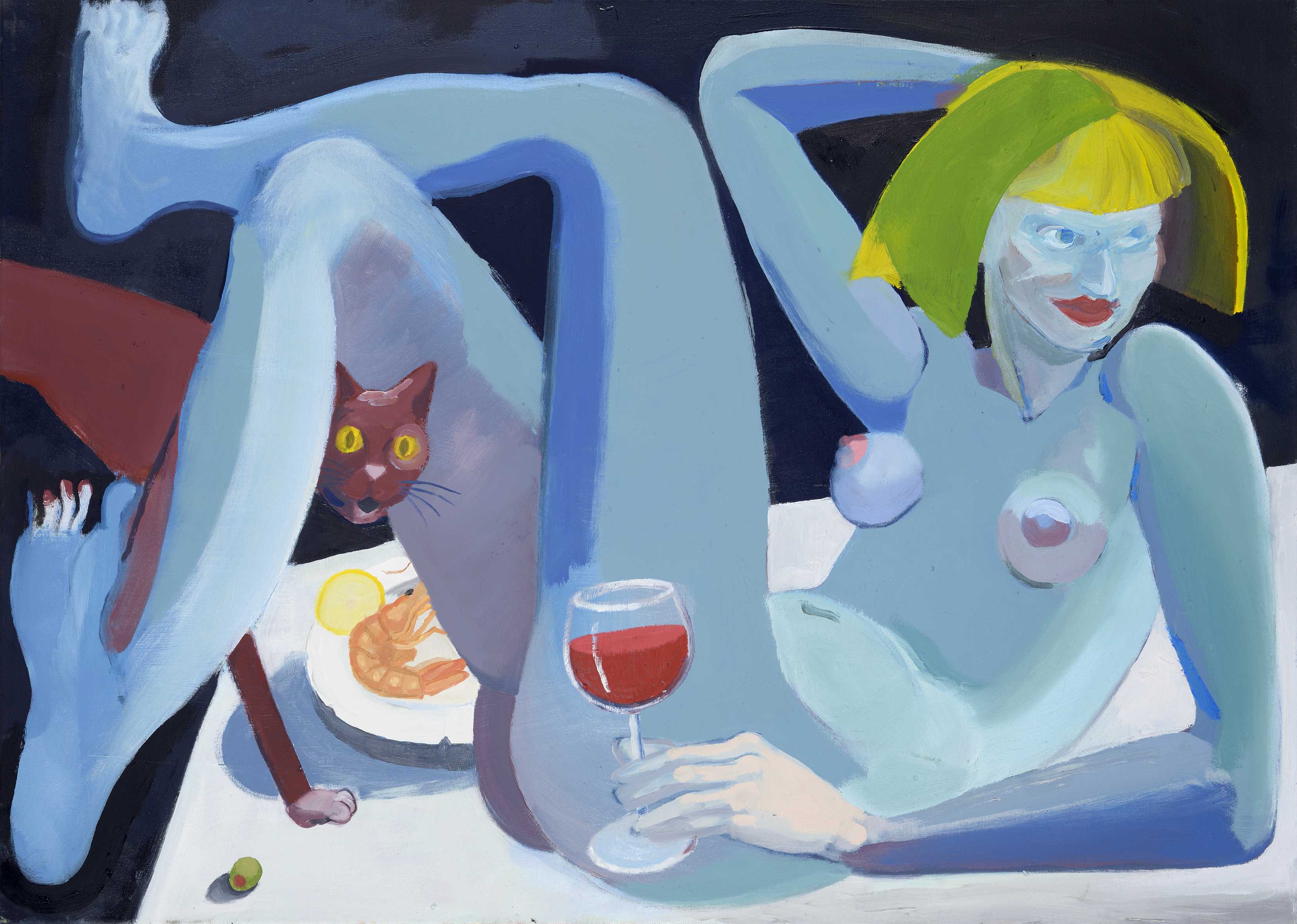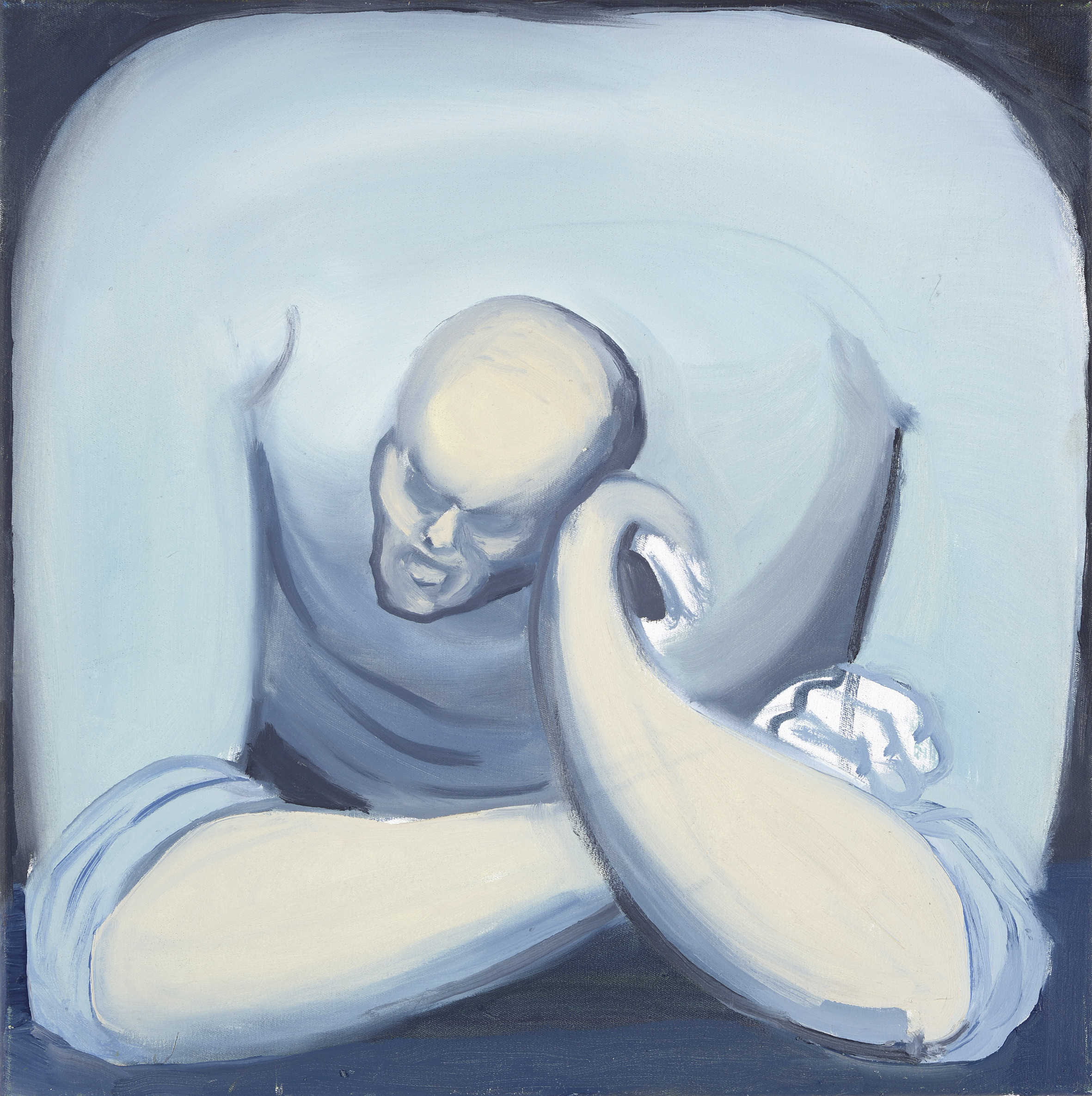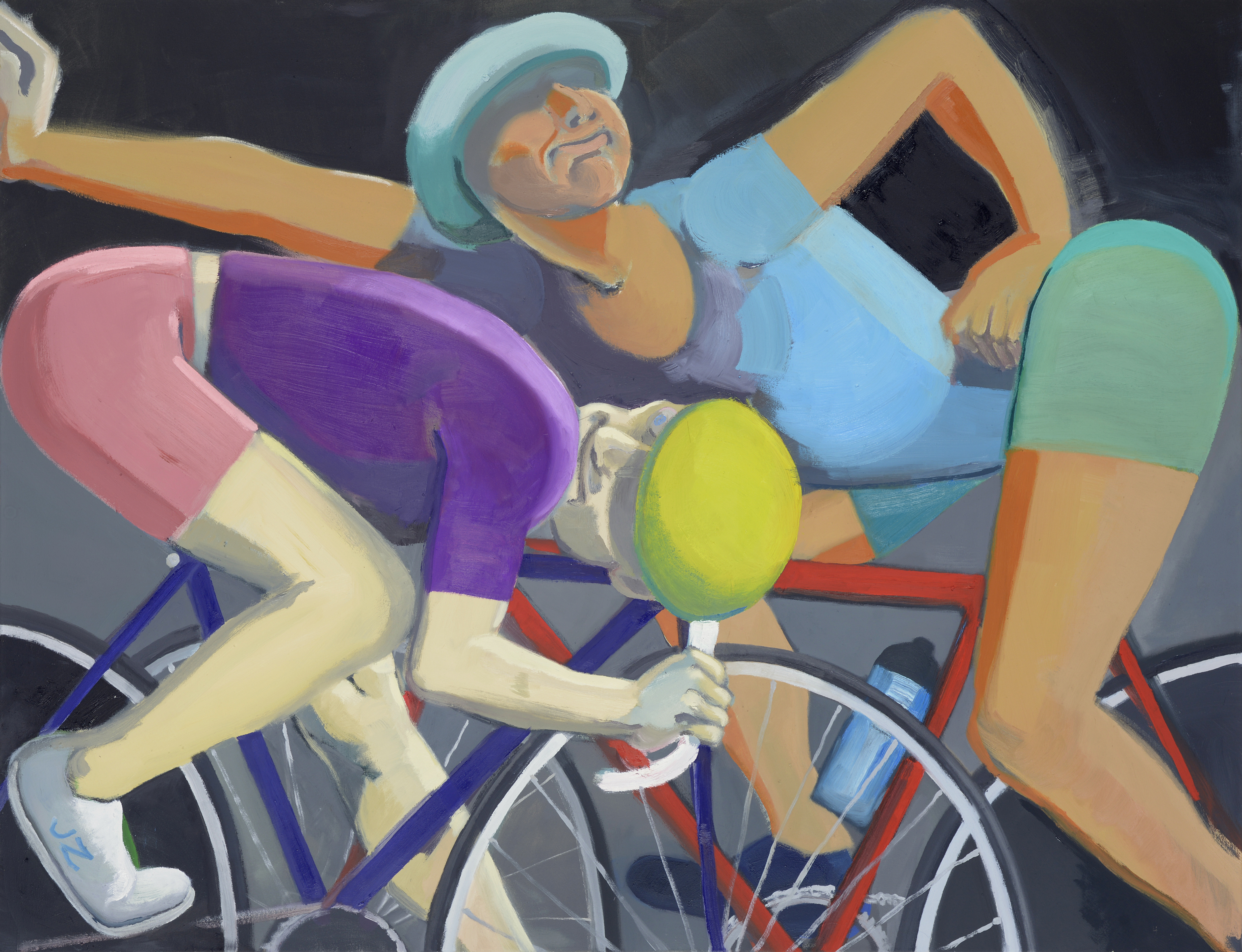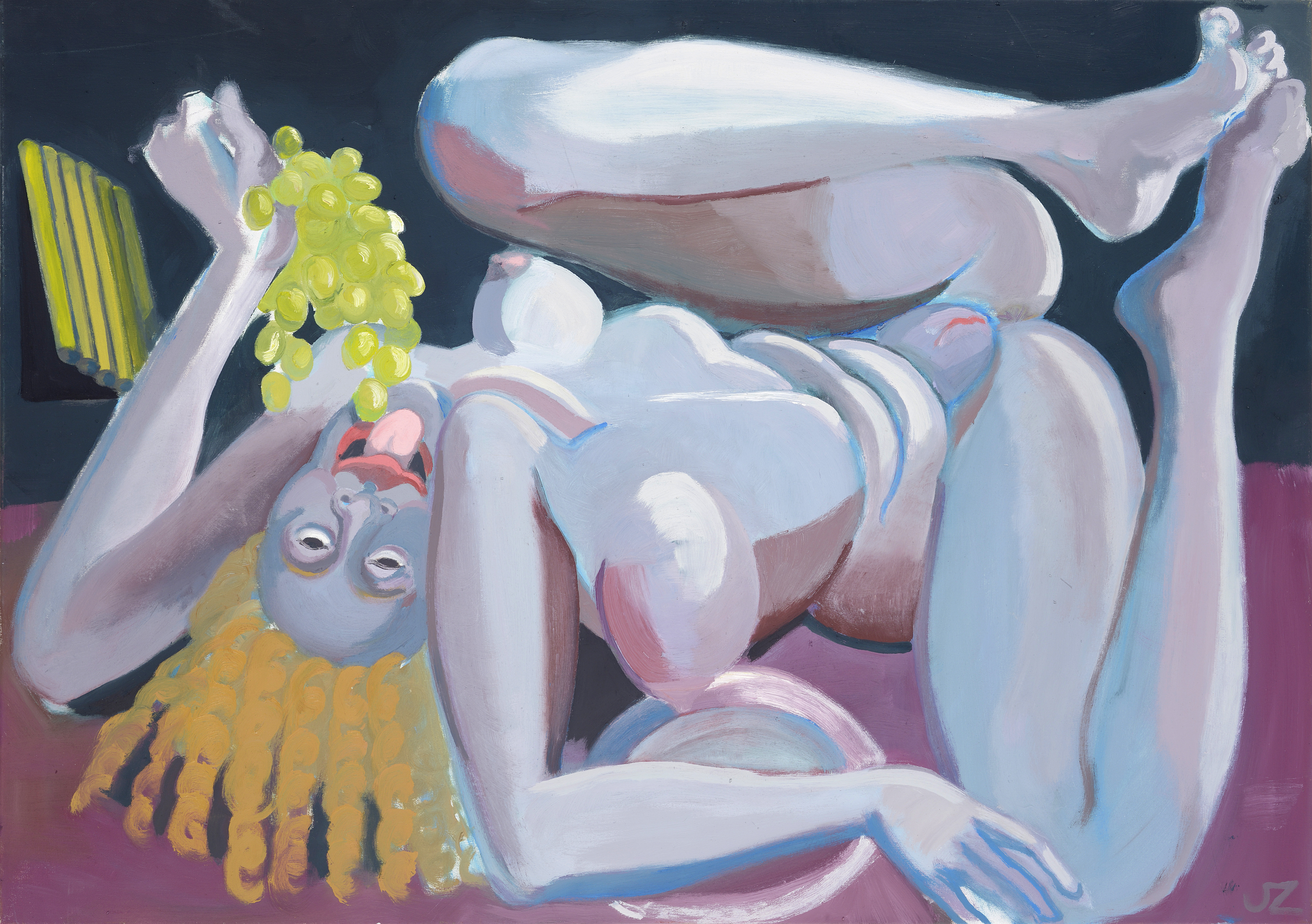 Formal und kompositorisch habe ich für mich mit den jüngsten Bildern einen Weg gefunden, Bild abstrakter zu denken. Indem ich meine Figuren, die Bildfläche von Bildrand zu Bildrand durchmessen lasse, entstehen Kompositionen die den Rand als Grenze herausfordern und so eine rhythmische Spannung erzeugen. Formen wandern über die Fläche, den Rändern entgegen, werden umgelenkt und suchen ihren Fortgang innerhalb der Grenzen des Bildes.