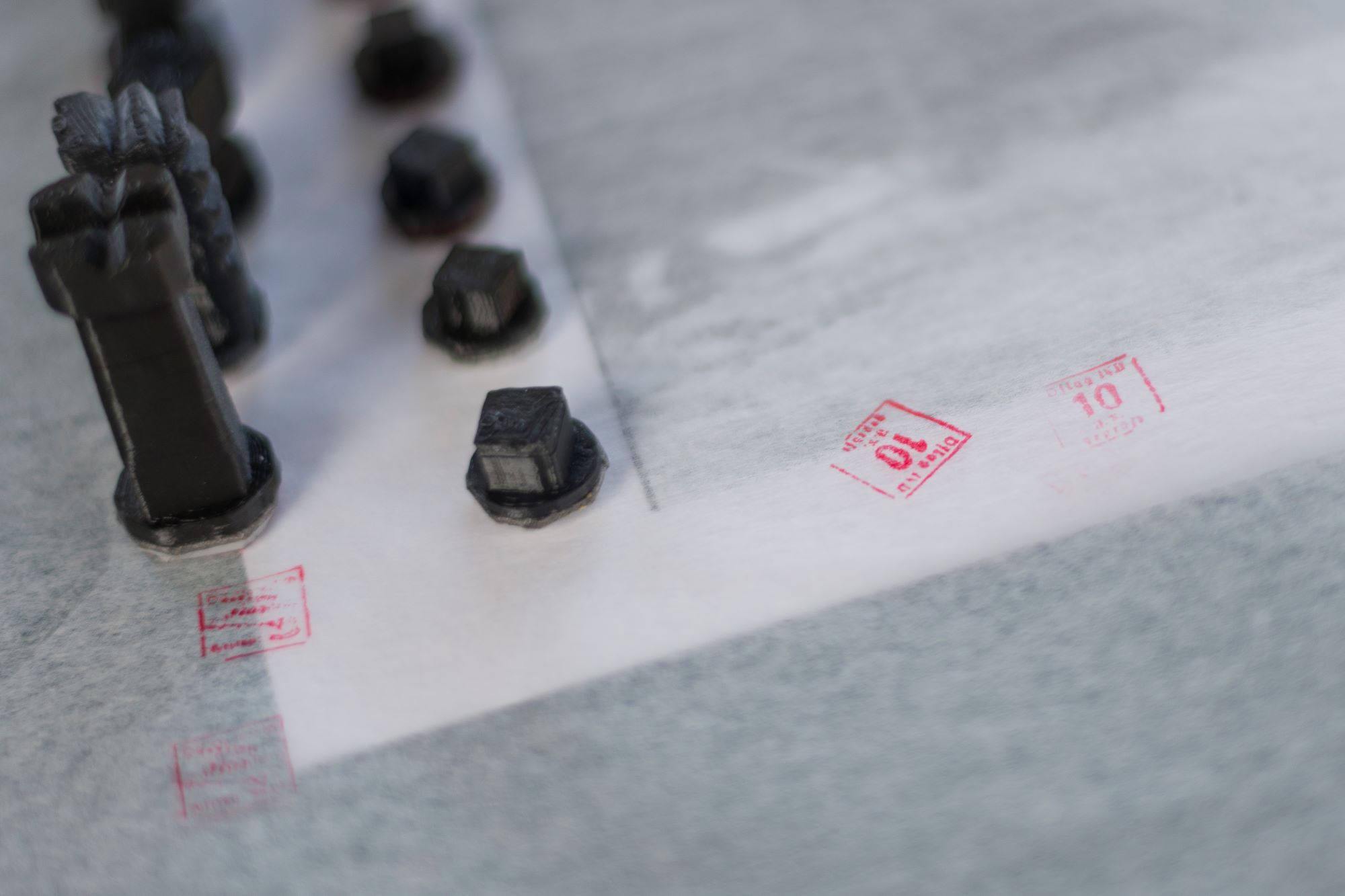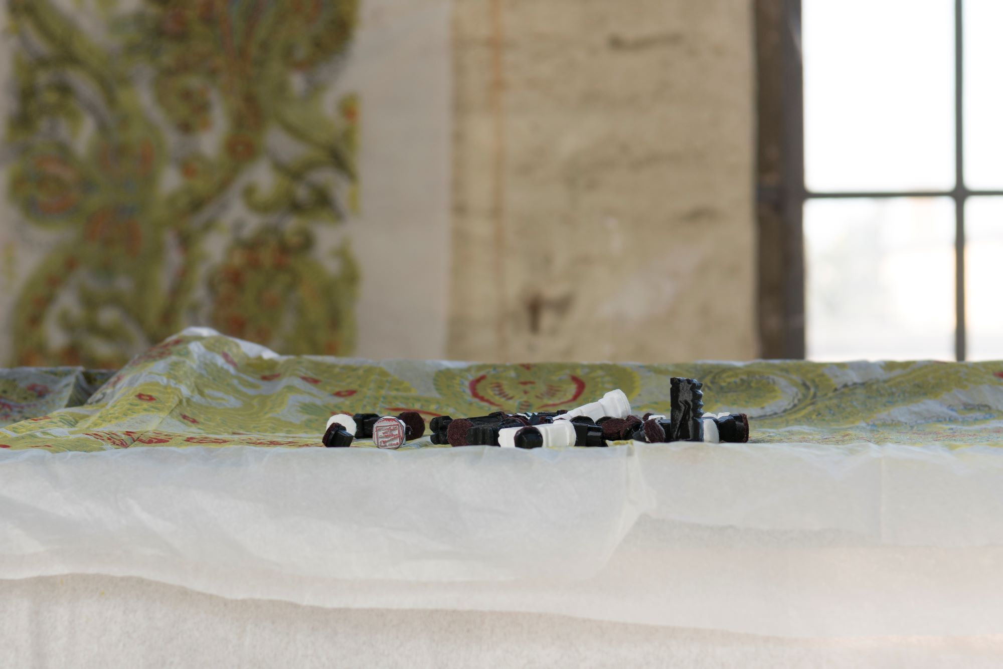 The project consists of four parts: An on-site study dealing with the question of camouflage (camouflage, performance and video), an investigation of the concept of copy and original in the archival (oil painting and digital print); a part in which I deal with the phenomenon of showing and concealing. On display are wallpapers and packaging sleeves (screen print on a tea paper roll). And another part, produced using the 3D printing process, in which I hybridize chess pieces and stamps, thereby taking the process of tamponing ad absurdum. What is not visible at first glance is particularly important to me.