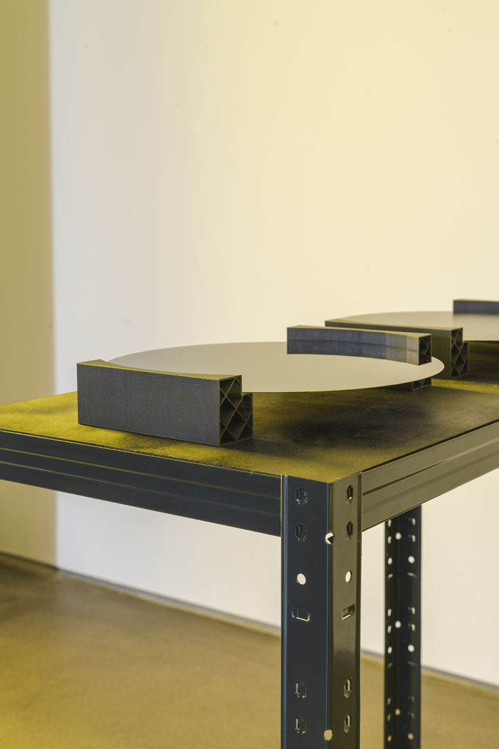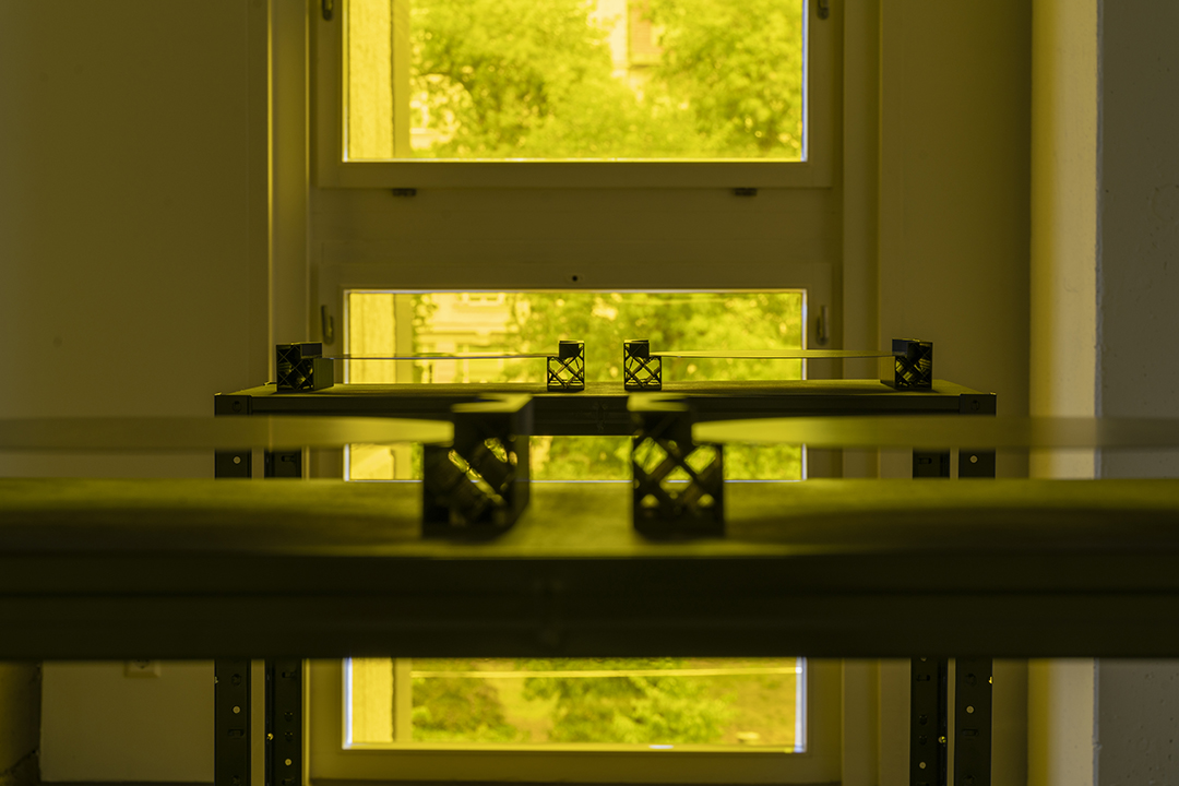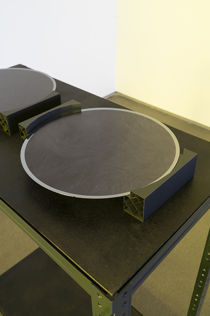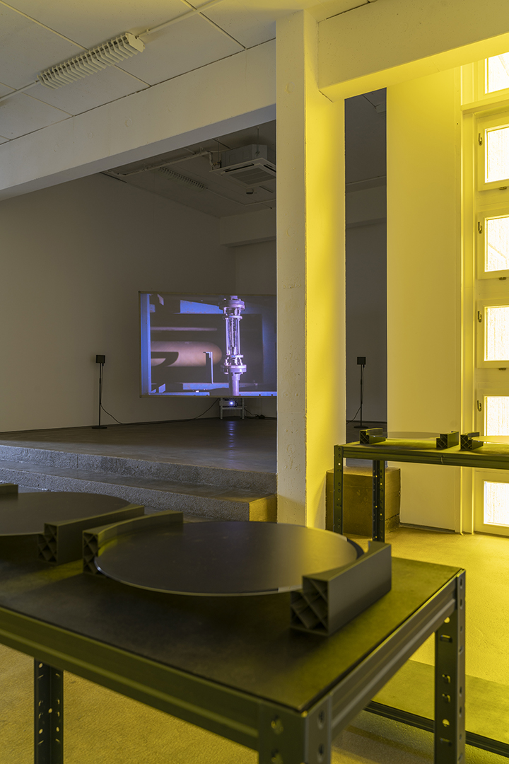 Internationally sought-after semiconductors require tons of water for their production. But where does the water come from? And who gains access to it and on what terms? In her video Particular Waters, Su addresses the water network in Hsinchu,Taiwan which is accompanied with four dummy wafers imprinted with ocean satellite imagery. The hydrosocial engagement of the global semiconductor supply chain and its ecological consequences are strongly incorporated into her artistic work.