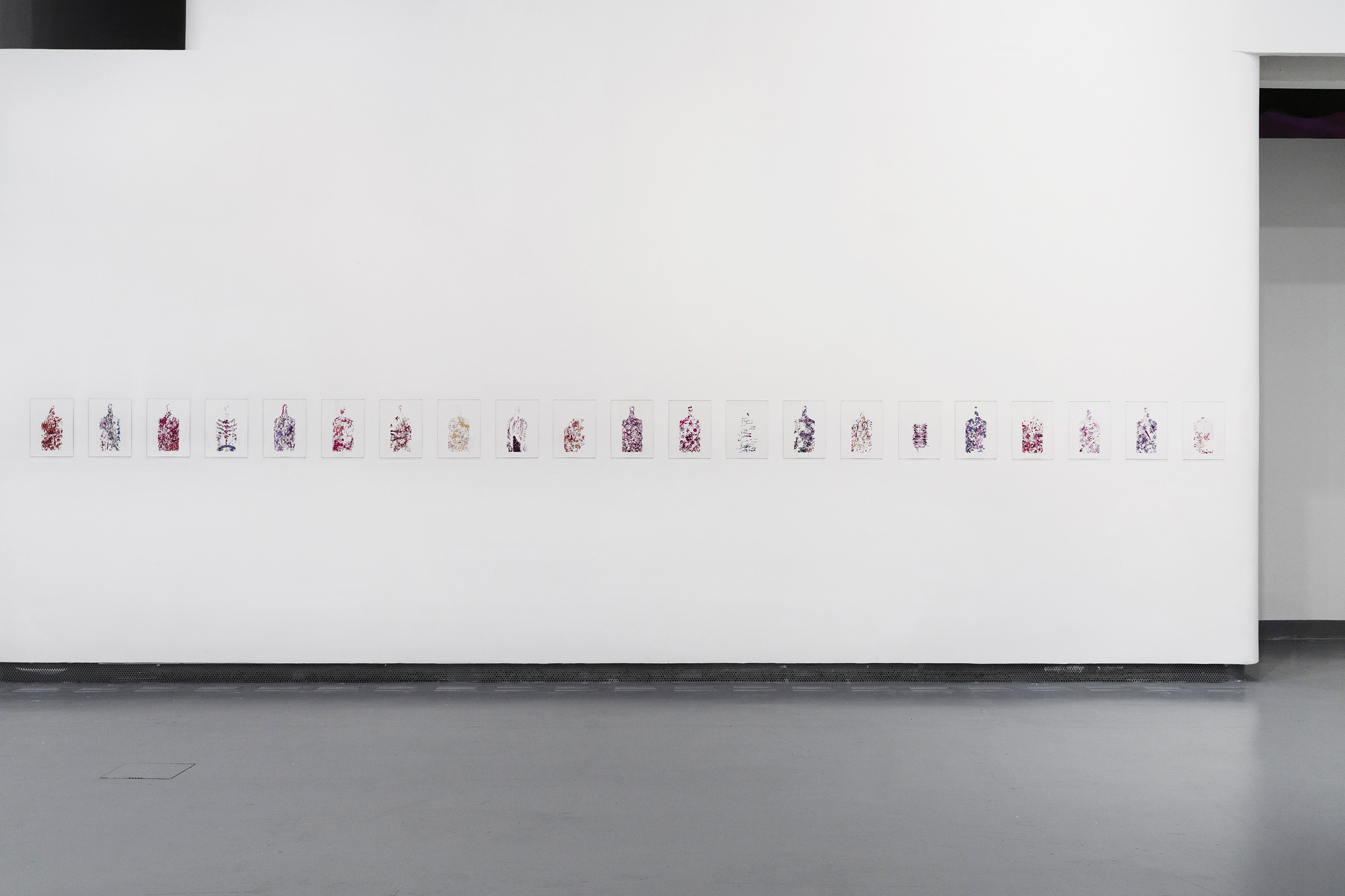 Die Arbeit “Widmungen” besteht aus 100 Bild-Text-Paaren. Jede dieser Kombinationen ist einer konkreten russischen Frau* gewidmet, deren Leben durch ihren (Ex-) Partner genommen wurde. Die Bilder sind während eines Trauer-Rituals entstanden, das ich für diese Arbeit entwickelte und durchführte. Dieses Ritual, in seiner filmischen Übersetzung, ist in dem Video “Prozess (Arbeitstitel)” festgehalten. In ihm gedenke ich den Frauen*, die praktisch schutzlos einem unfassbaren Grauen ausgesetzt wurden, gebe aber auch dem Entsetzen und der Wut Ausdruck. Eine Form des Gedenkens sind auch die kurzen Texte, die ich für jede Frau* geschrieben habe. Diese Texte basieren auf Fotoportraits der verstorbenen Frauen*. Den Zugriff auf diese Portraits hatte ich dank der Aktivistin Lubava Malischeva, die ein Foto-Memorial von russischen Femizid-Opfern pflegt. Sowohl beim Ritual als auch beim Schreiben fokussierte ich mich jedes Mal nur auf eine konkrete Biografie. In der Ausstellung bringe ich jedoch alle 100 Biografien wieder zusammen um zu zeigen, dass diese Femizide trotz ihrer tragischen Individualität keine Einzelfälle sind. Sie sind vielmehr ein Teil eines weltweiten Phänomens - und dazu auch nur ein kleiner.